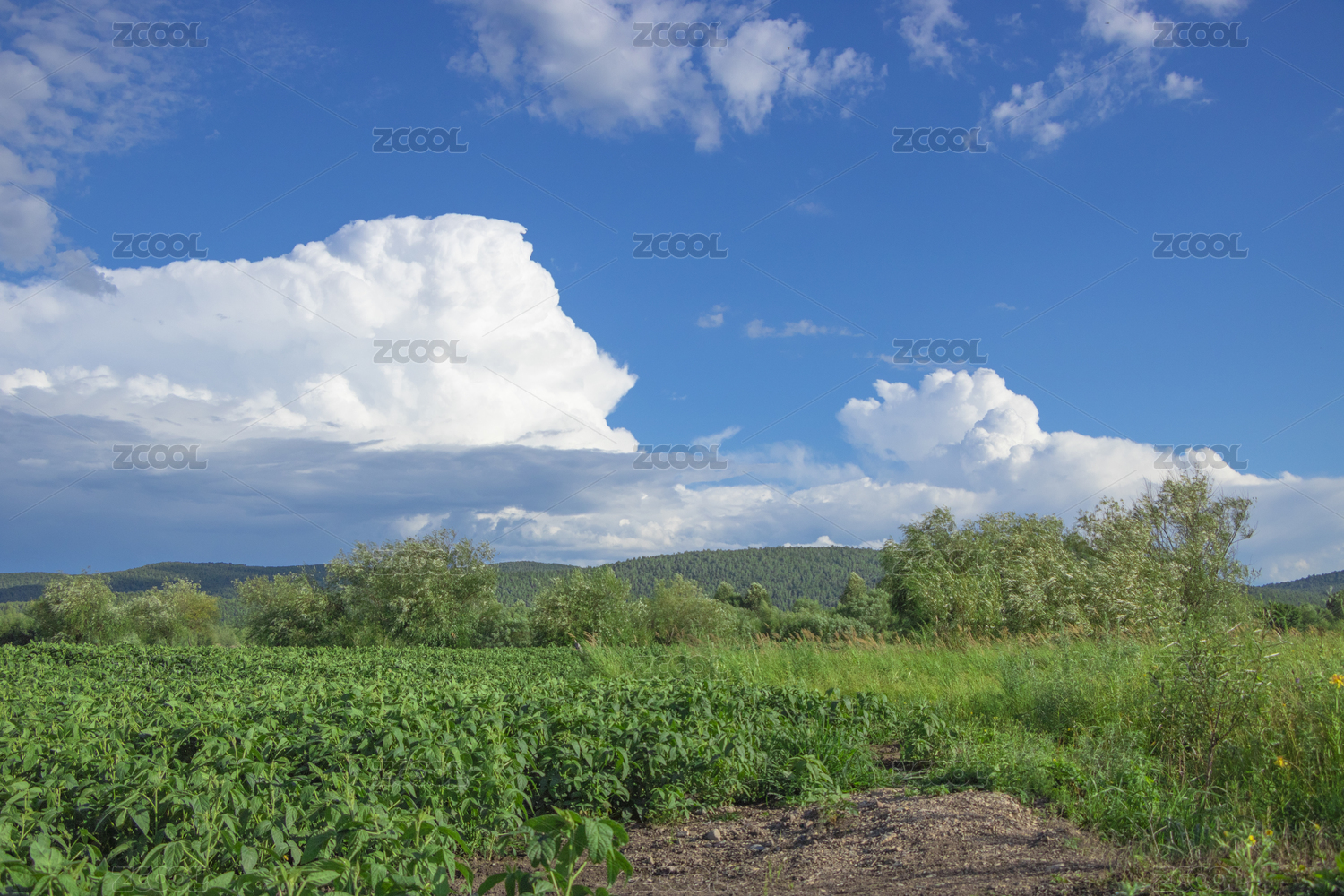 中国大兴安岭生机勃勃的荒野中形状奇特的云