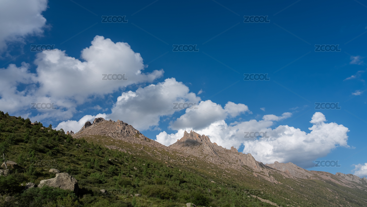 蓝天白云下的山坡