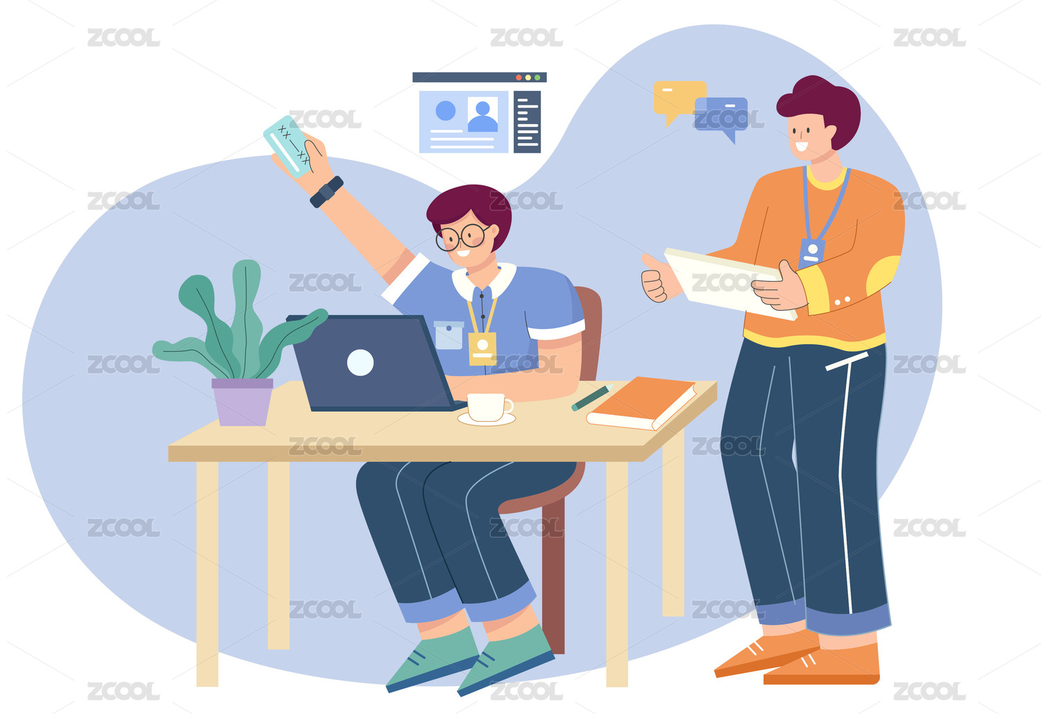 渐变炫彩植物沙发数据扁平程序员和电脑