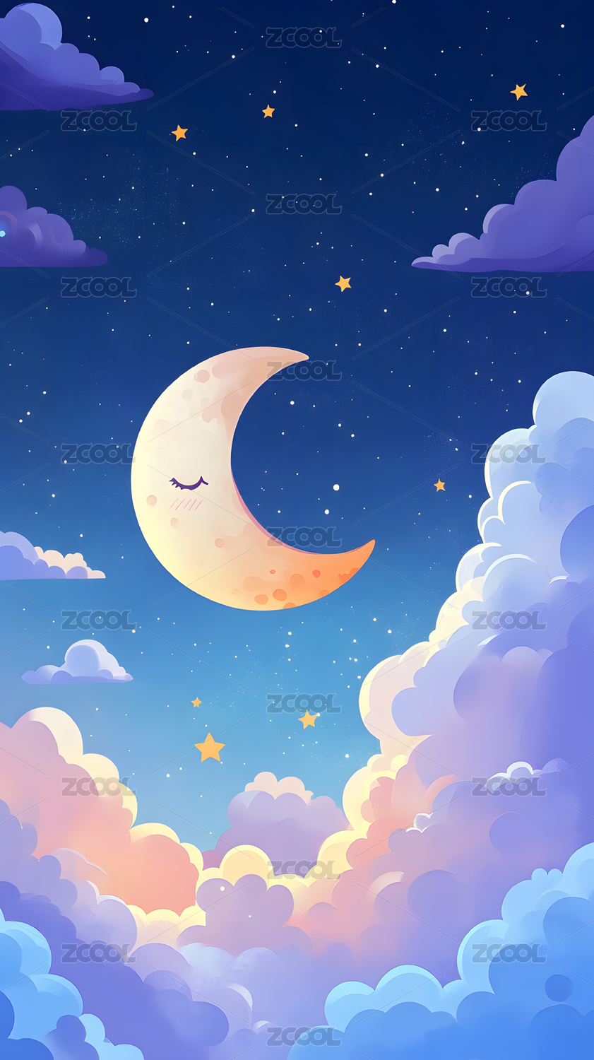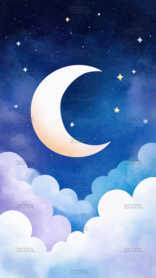 卡通月亮云朵夜空背景图