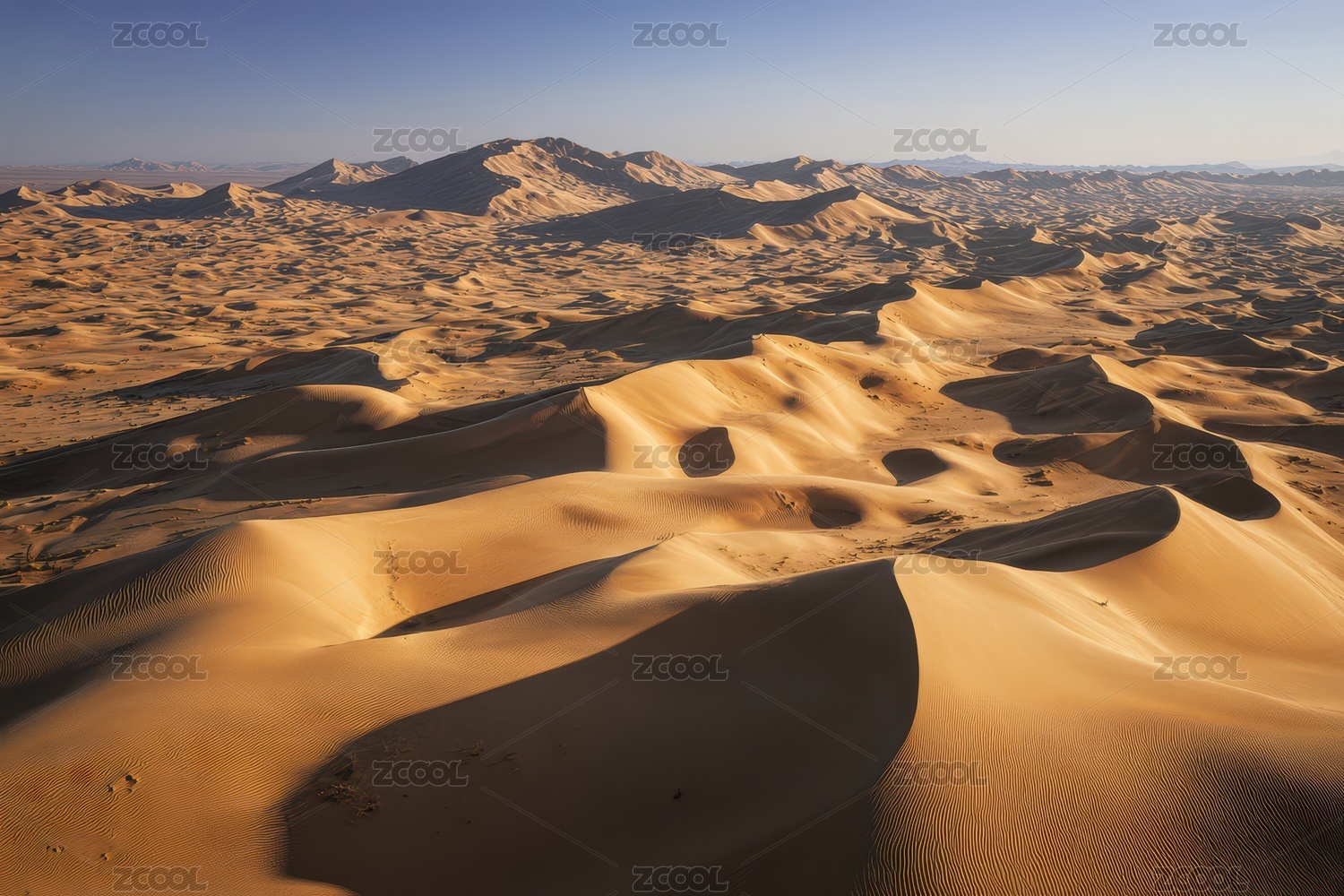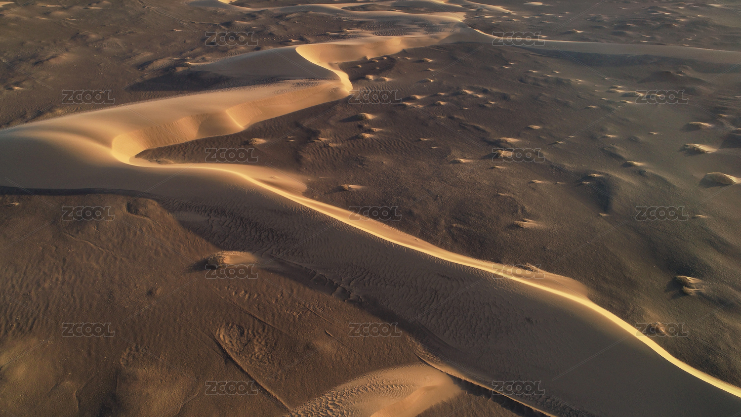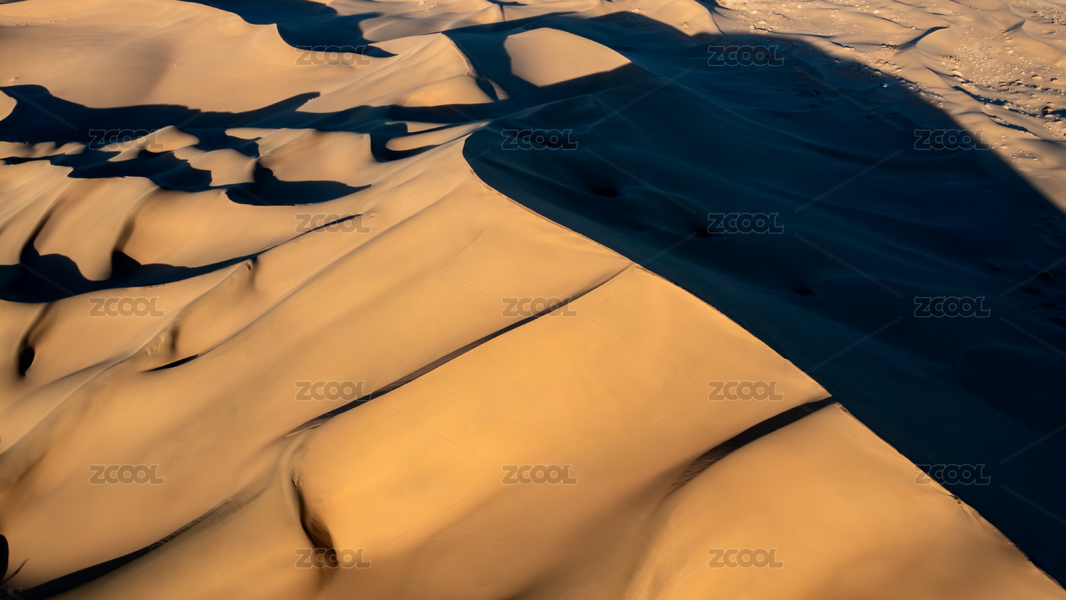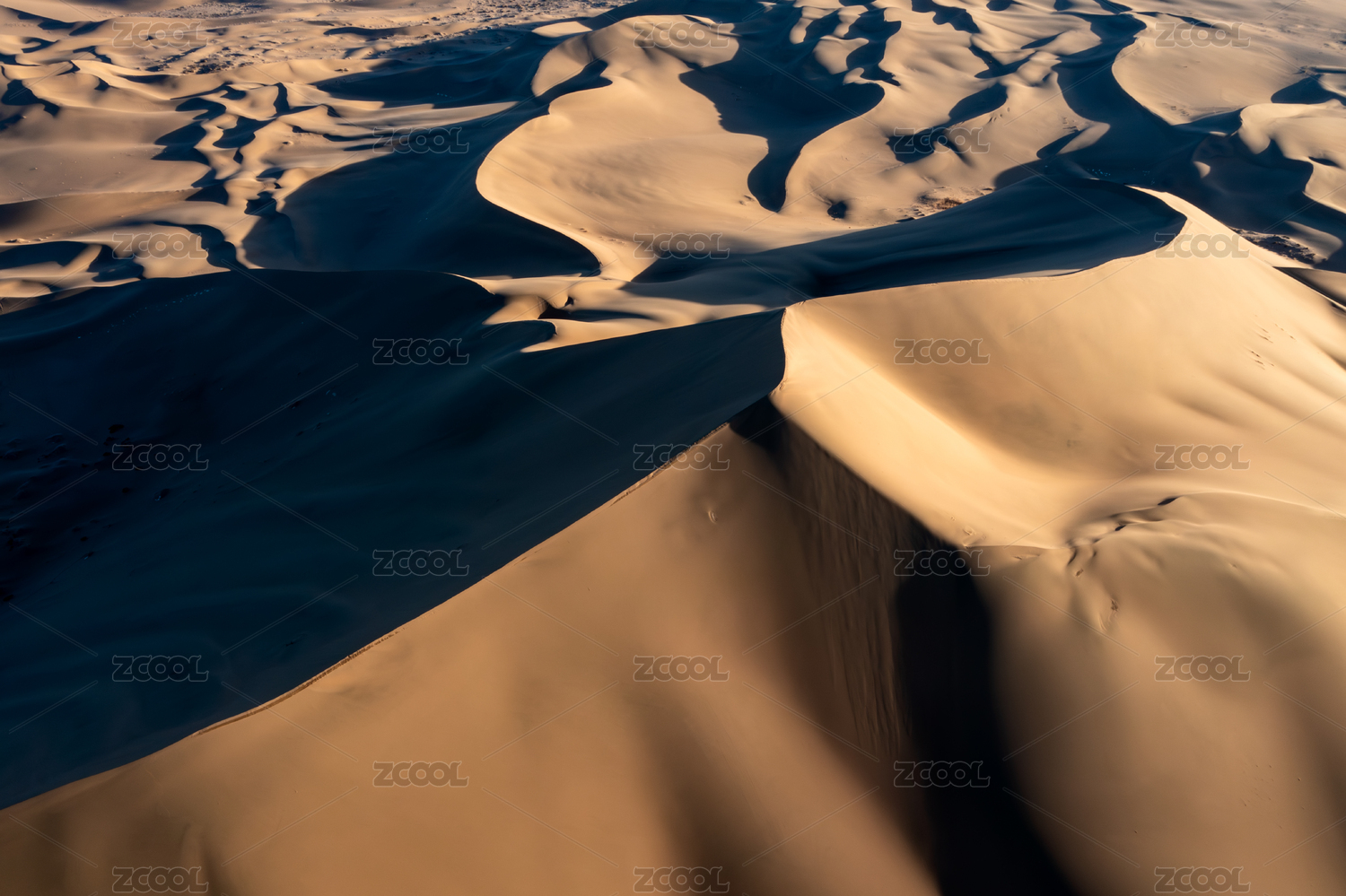中国库布齐沙漠景区航拍,一望无际的明暗对比的沙丘荒漠