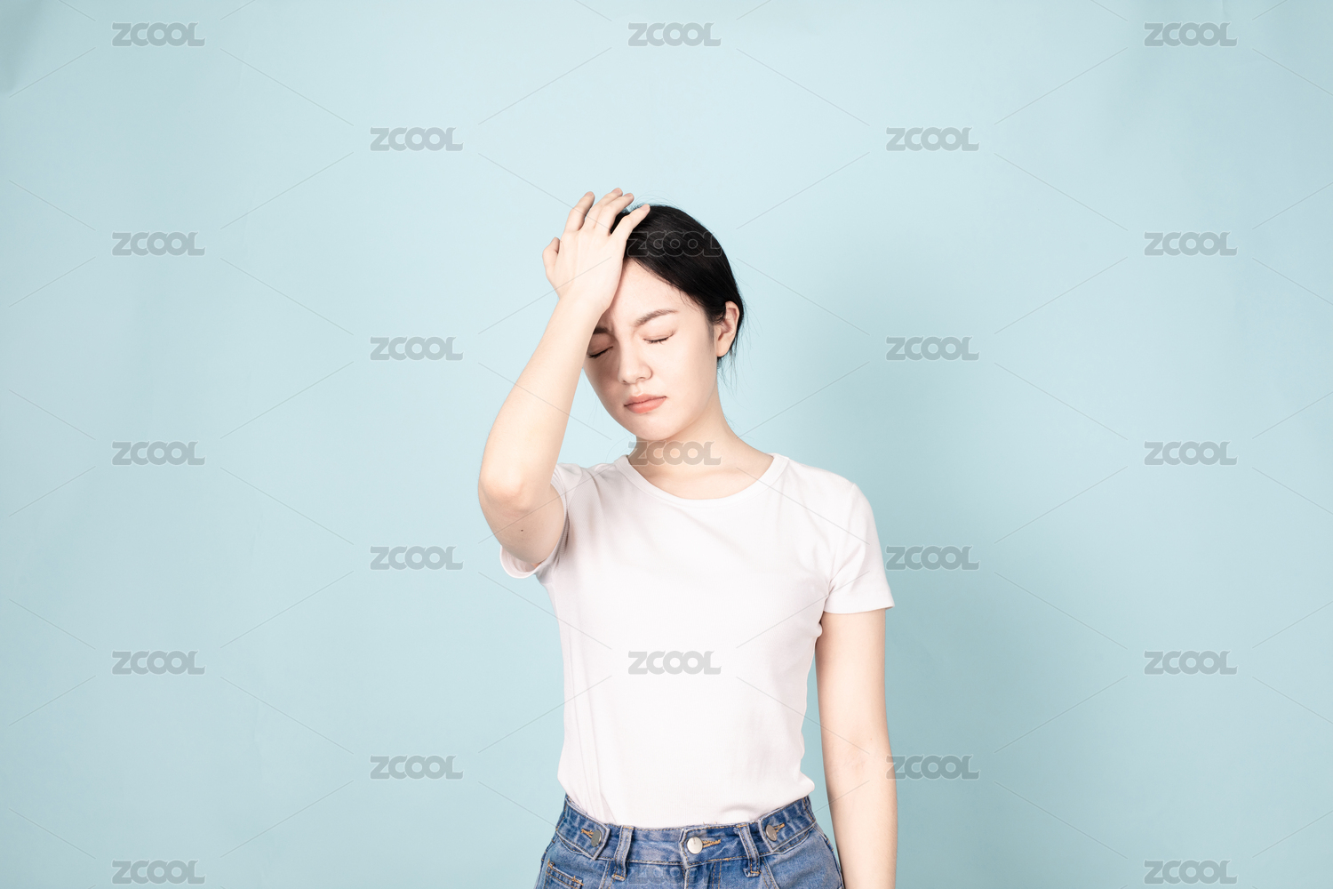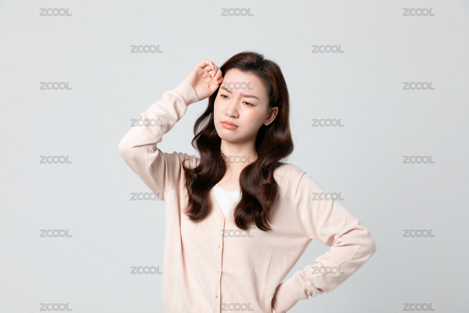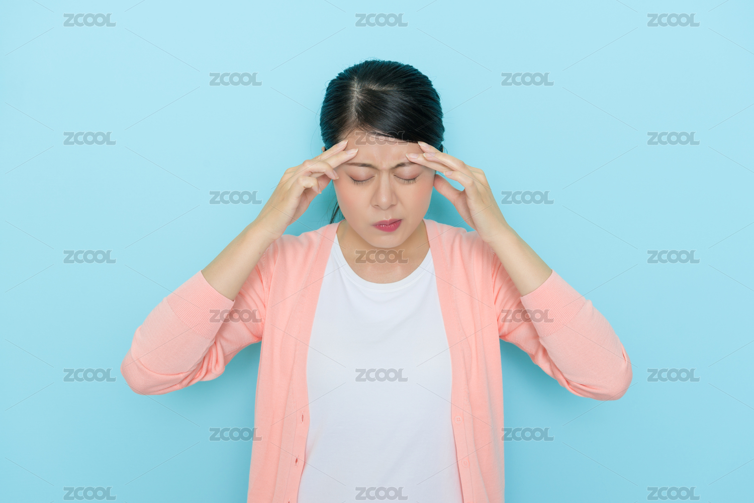年轻女性头疼双手扶额