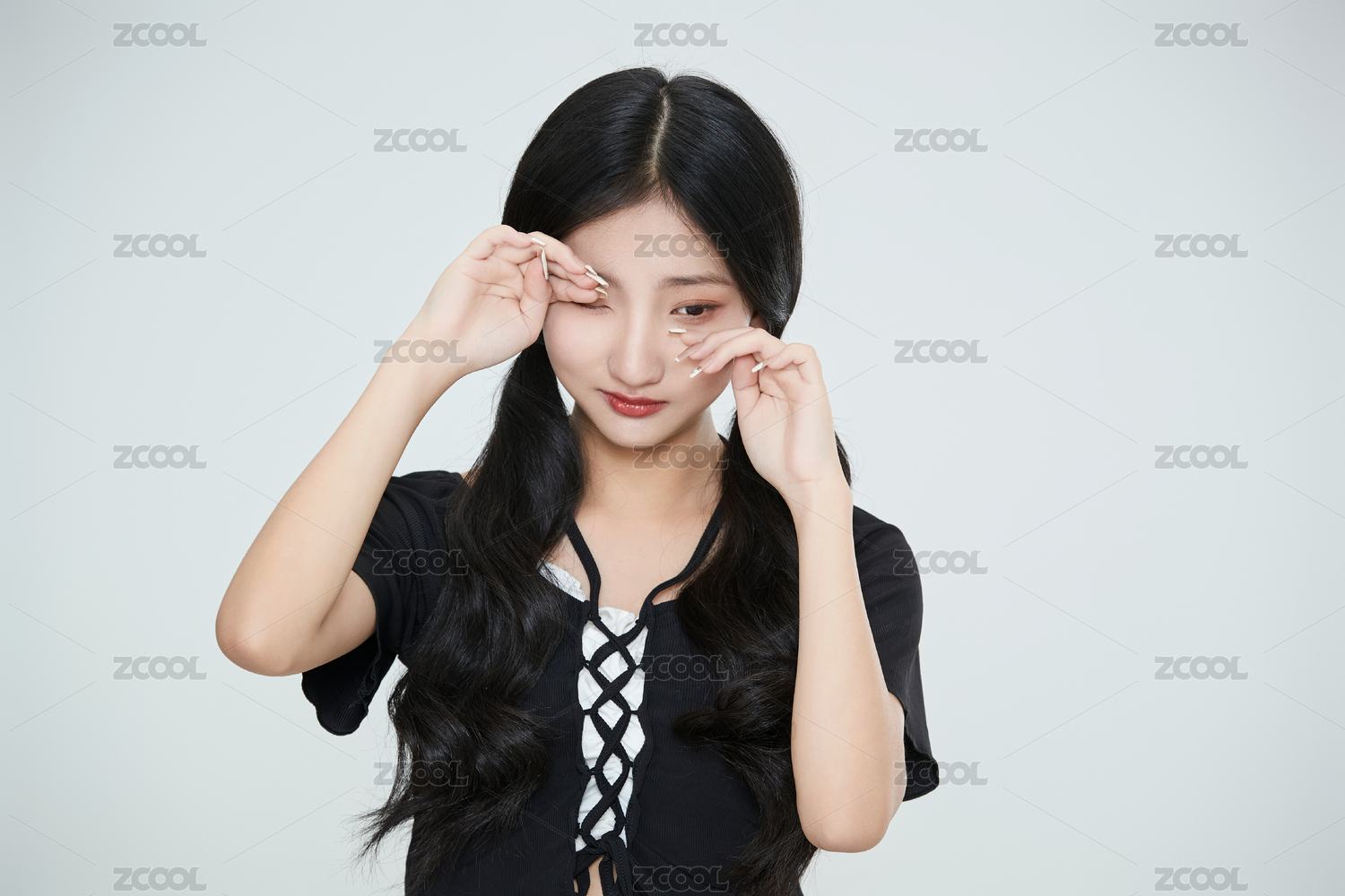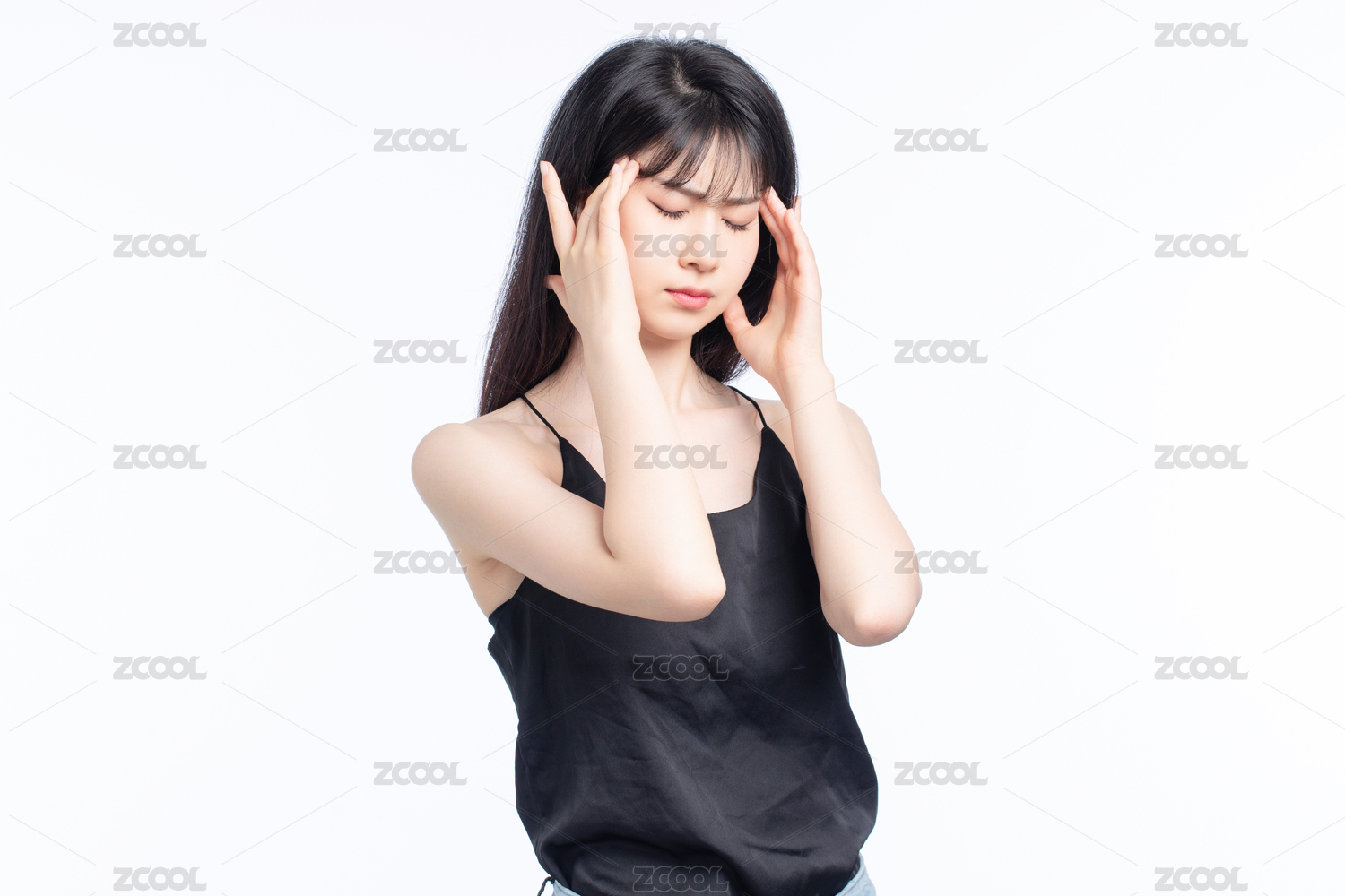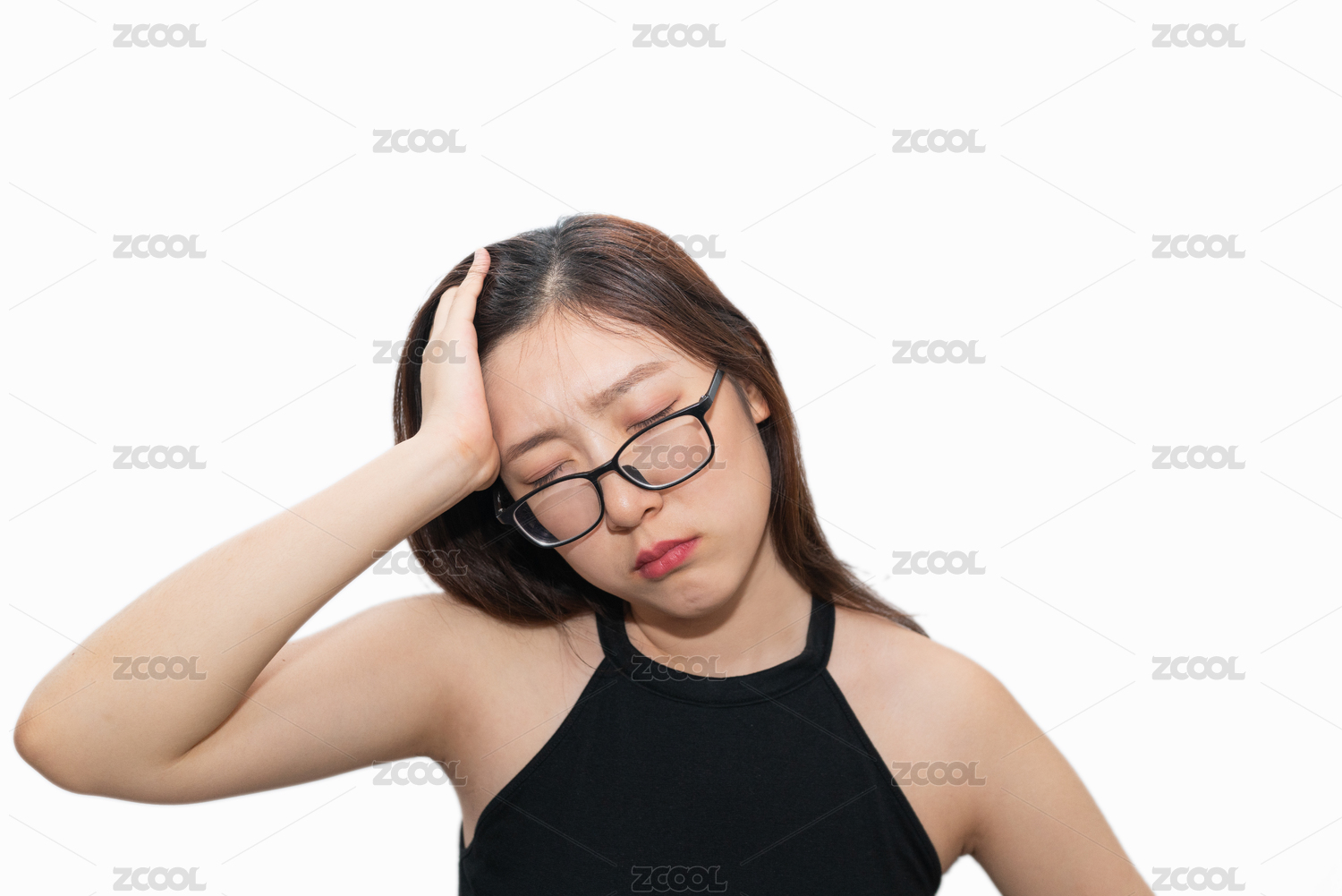 头疼,头痛,头晕,晕,难受,眼睛疼,闭眼,揉眼睛,揉太阳穴,白色背景