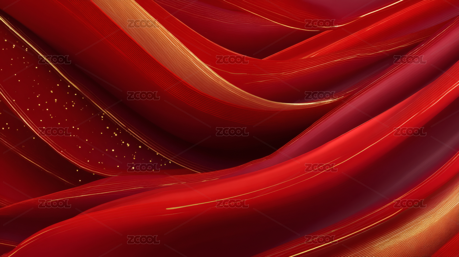 金色线条与红色波浪背景
