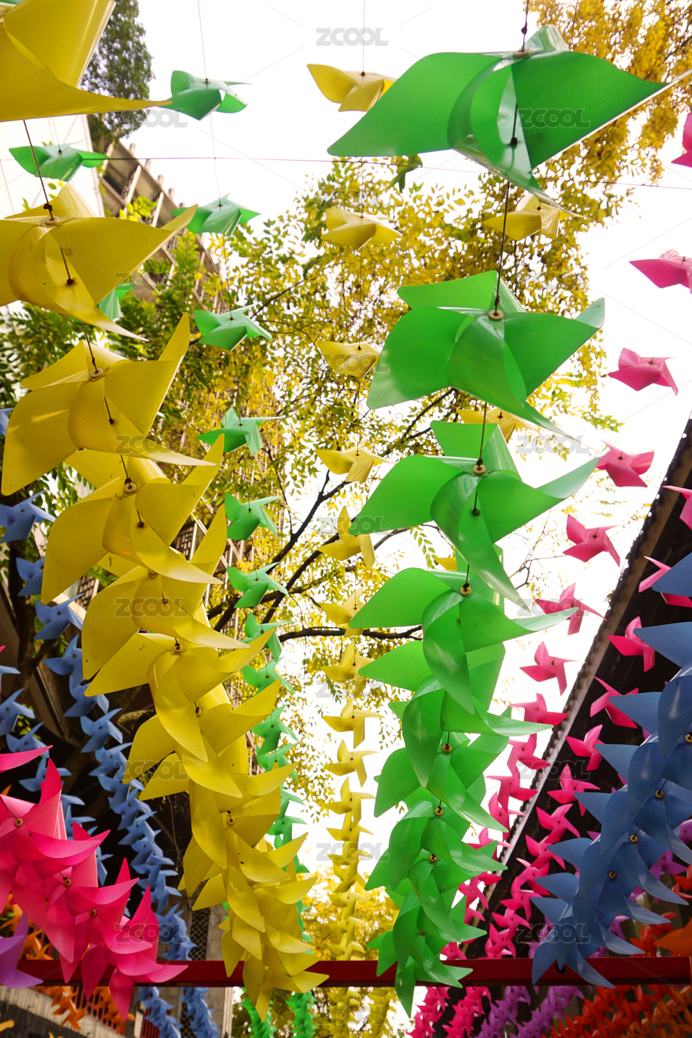 成都洛带古镇中国艺库七彩纸风车装饰