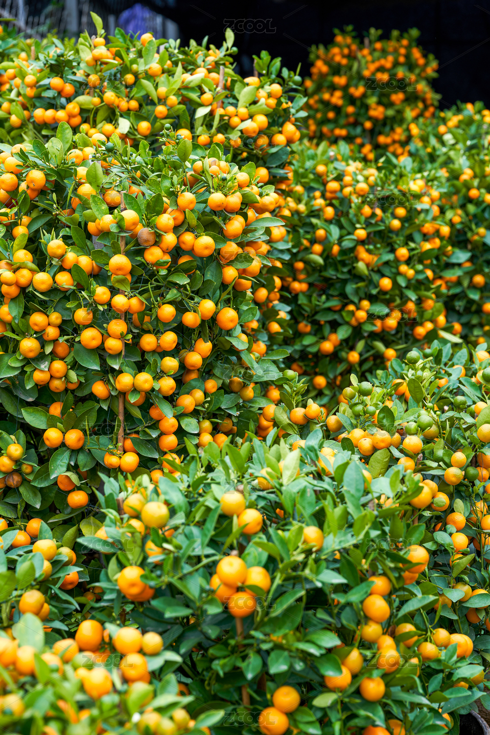 花卉市场里售卖的中国新年过年的柑橘树