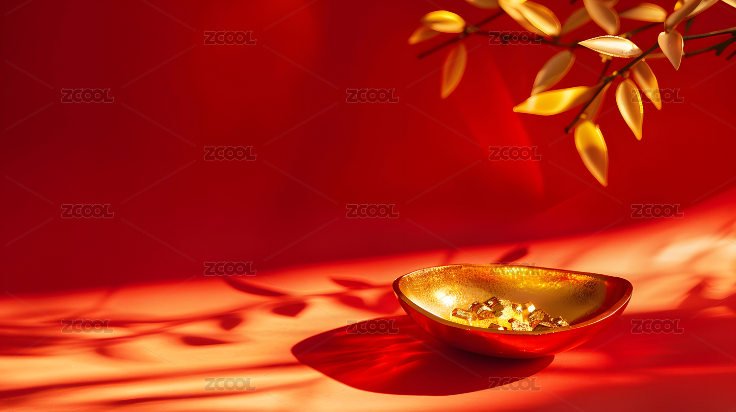 金碗金币红色背景