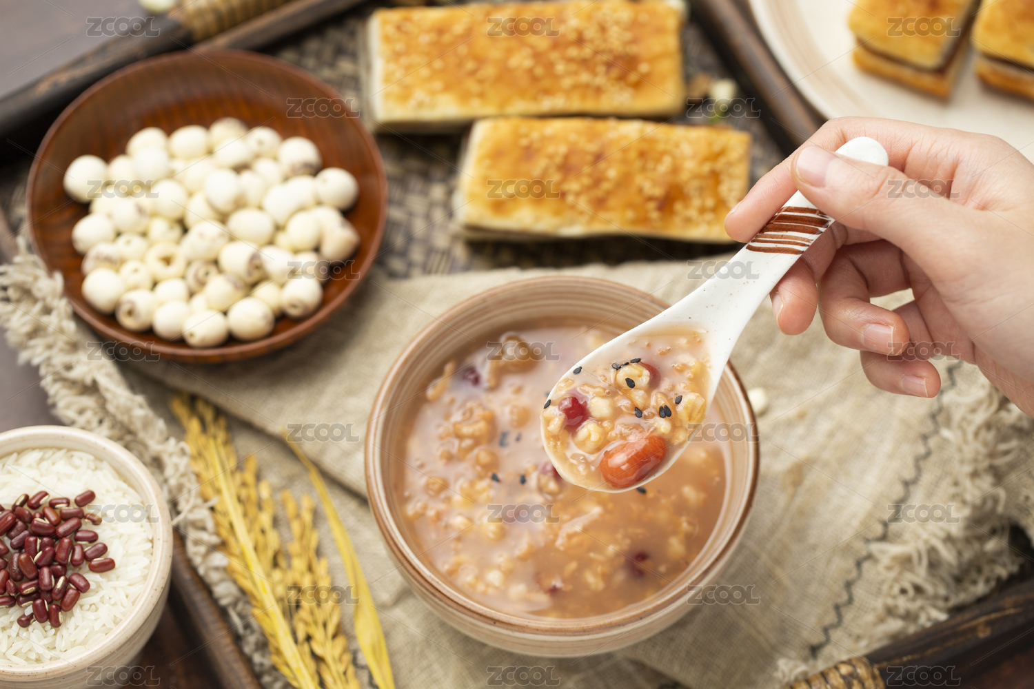 托盘里的八宝粥