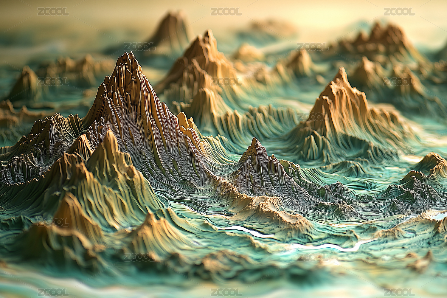 3D渲染山丘山脉高山大山山峰数字艺术插画