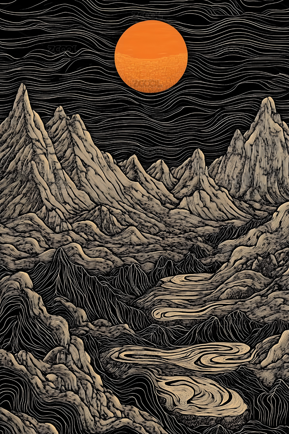暗黑风格山水风景插画