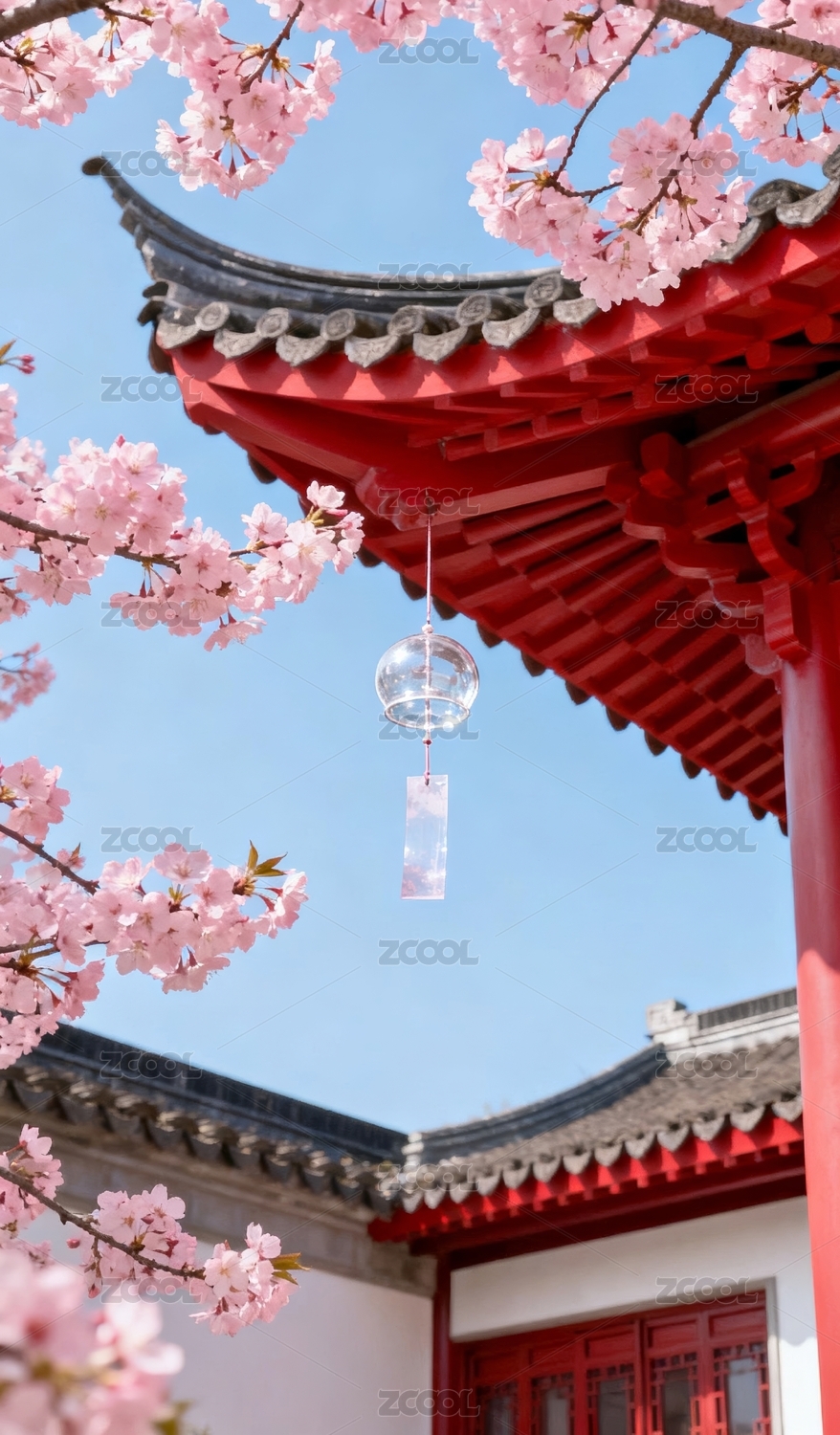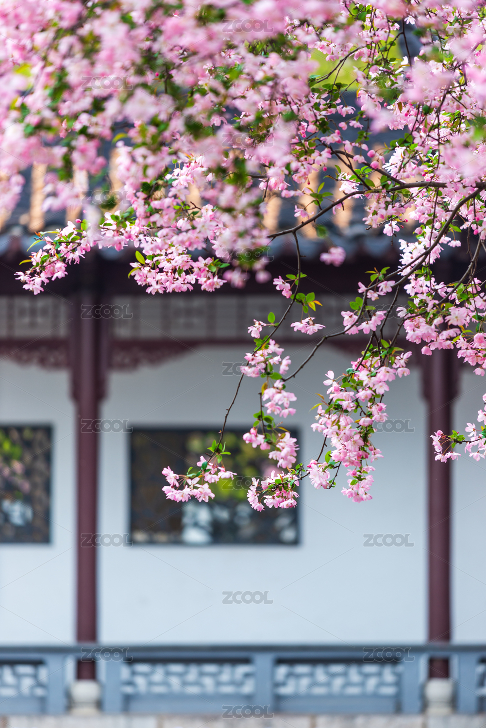 江苏南京玄武湖樱桃园樱花与传统建筑