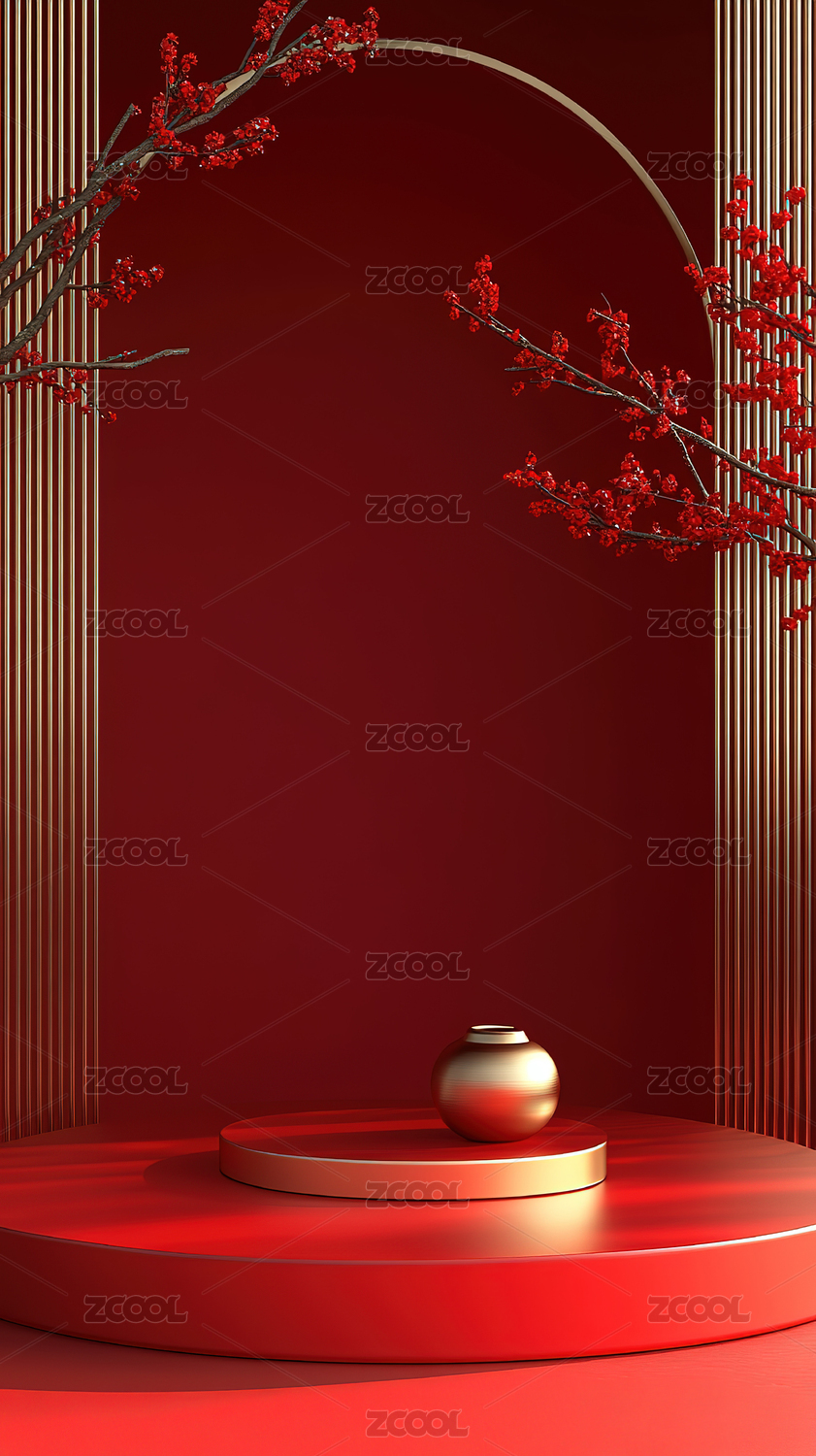 红色拱门下的圆形展台