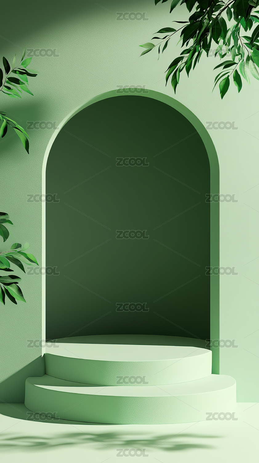 绿色植物与圆形展示台