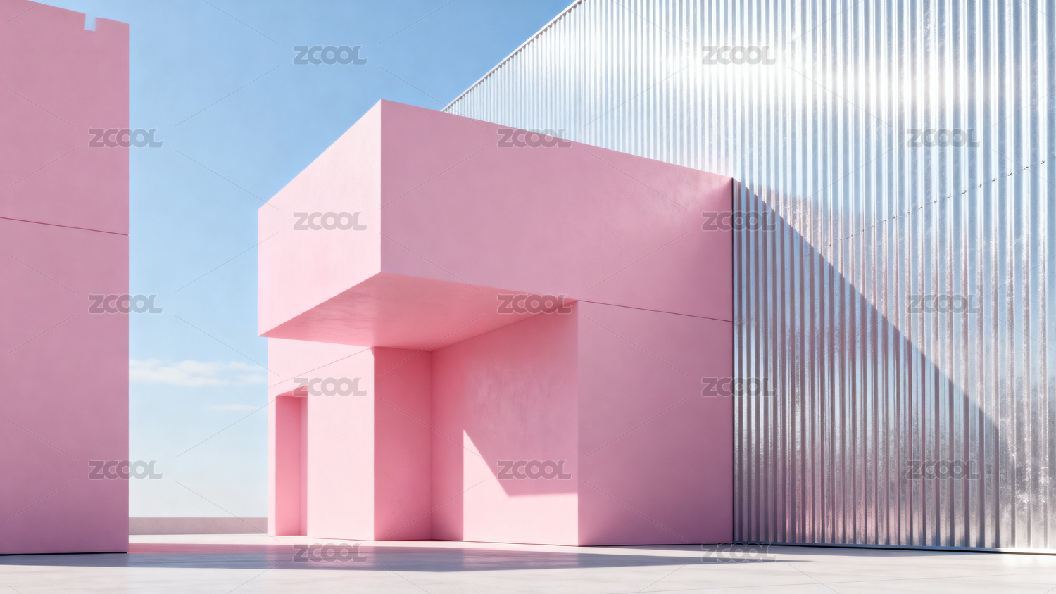 粉色建筑与银色墙面