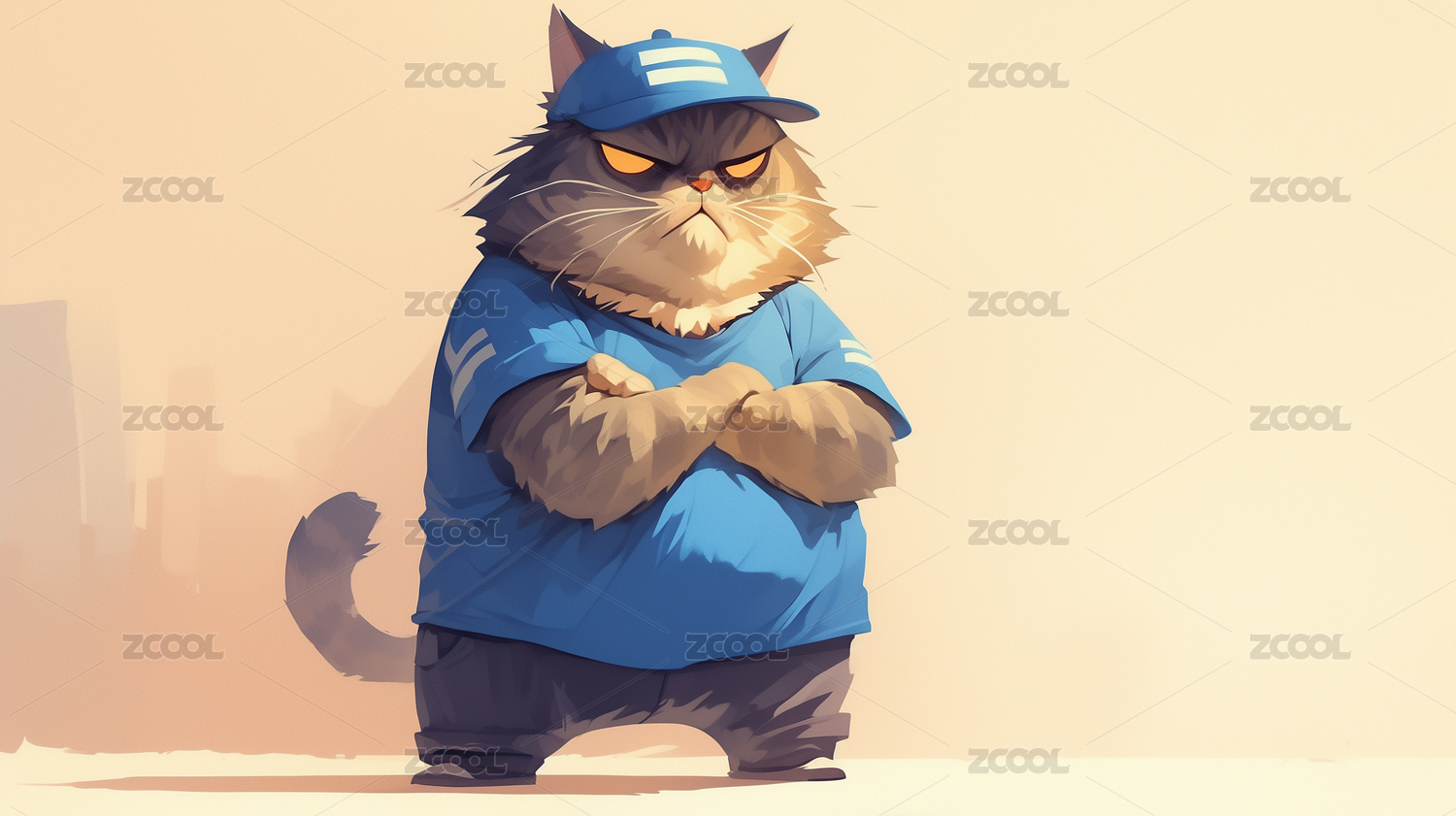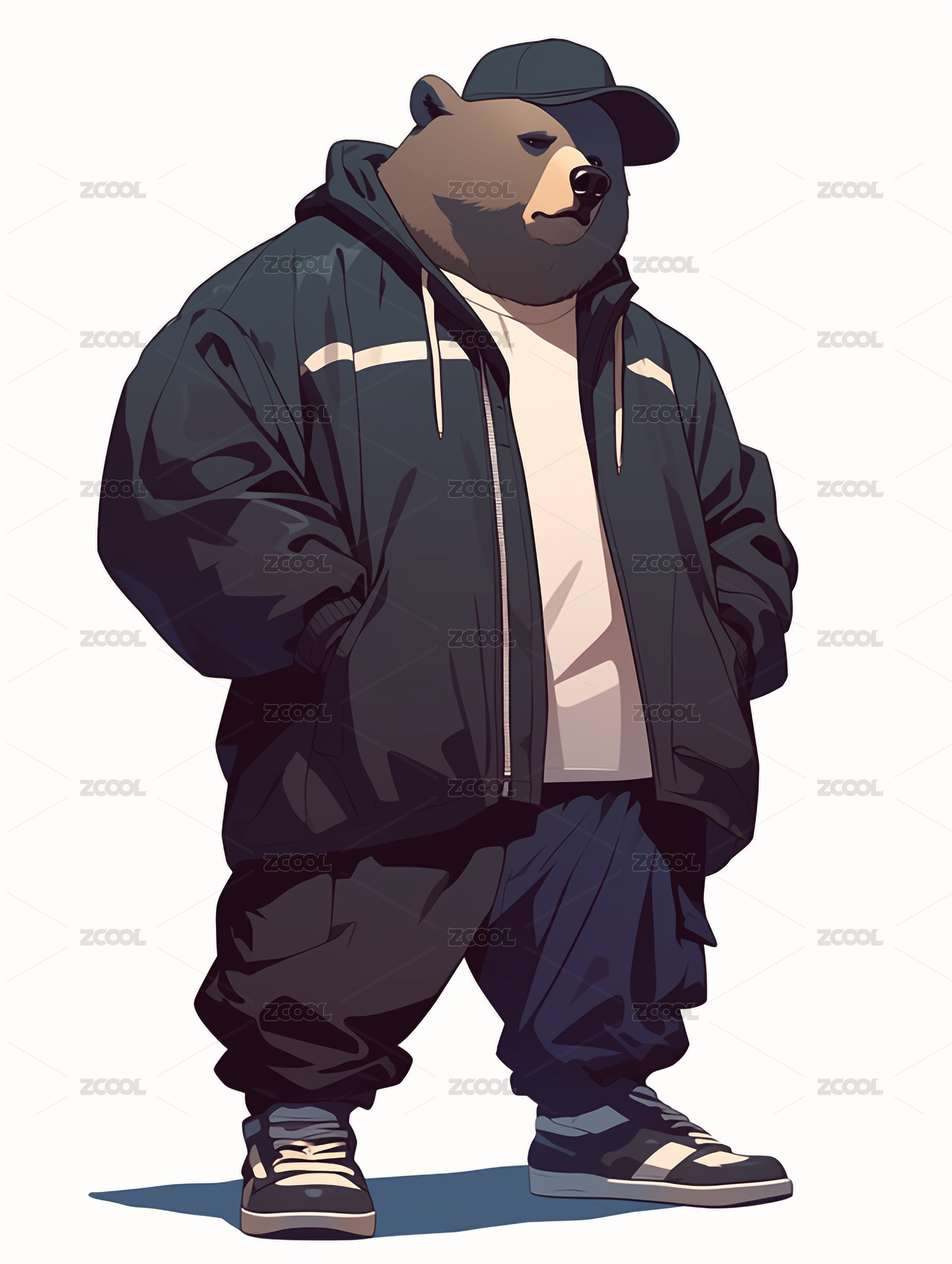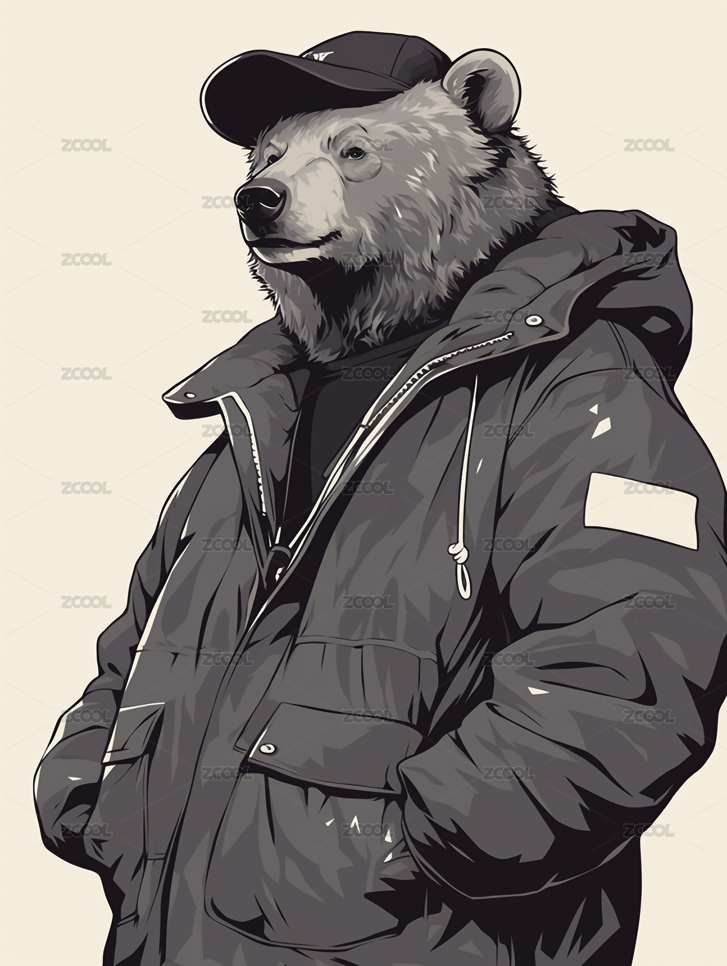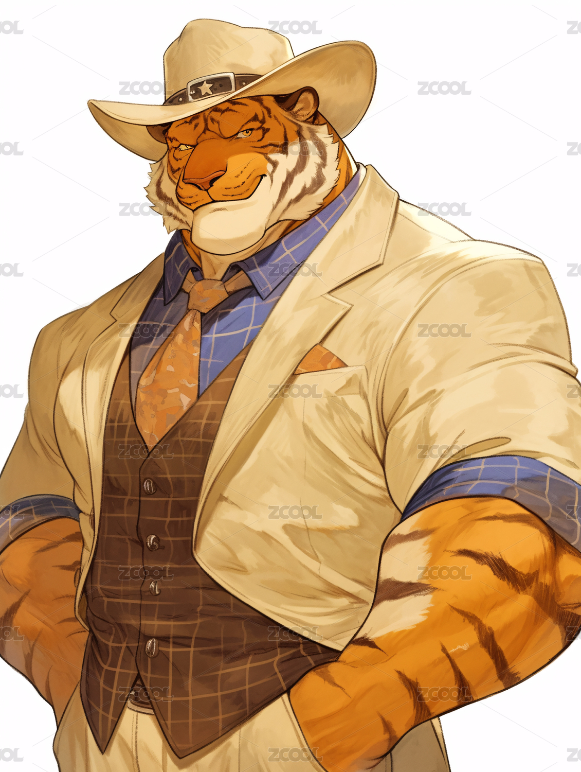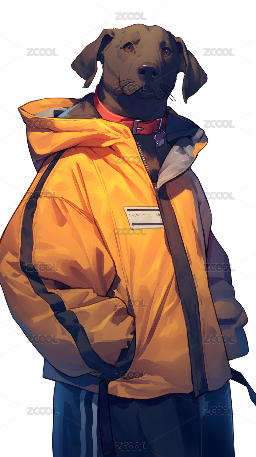 一只穿着外套牛仔裤的老虎插画