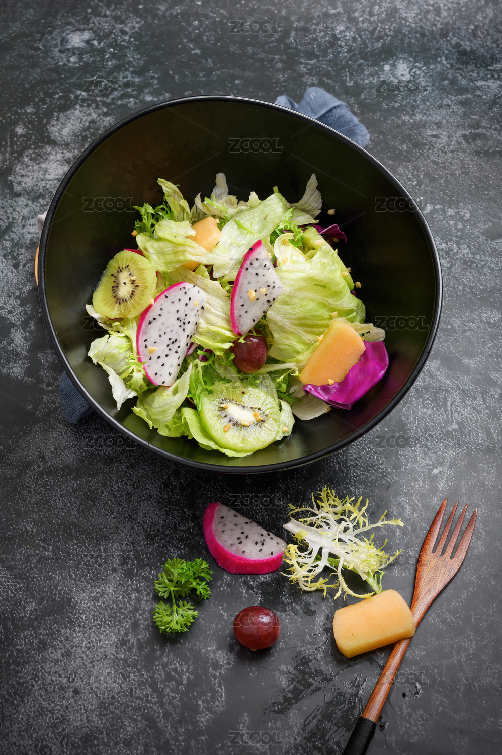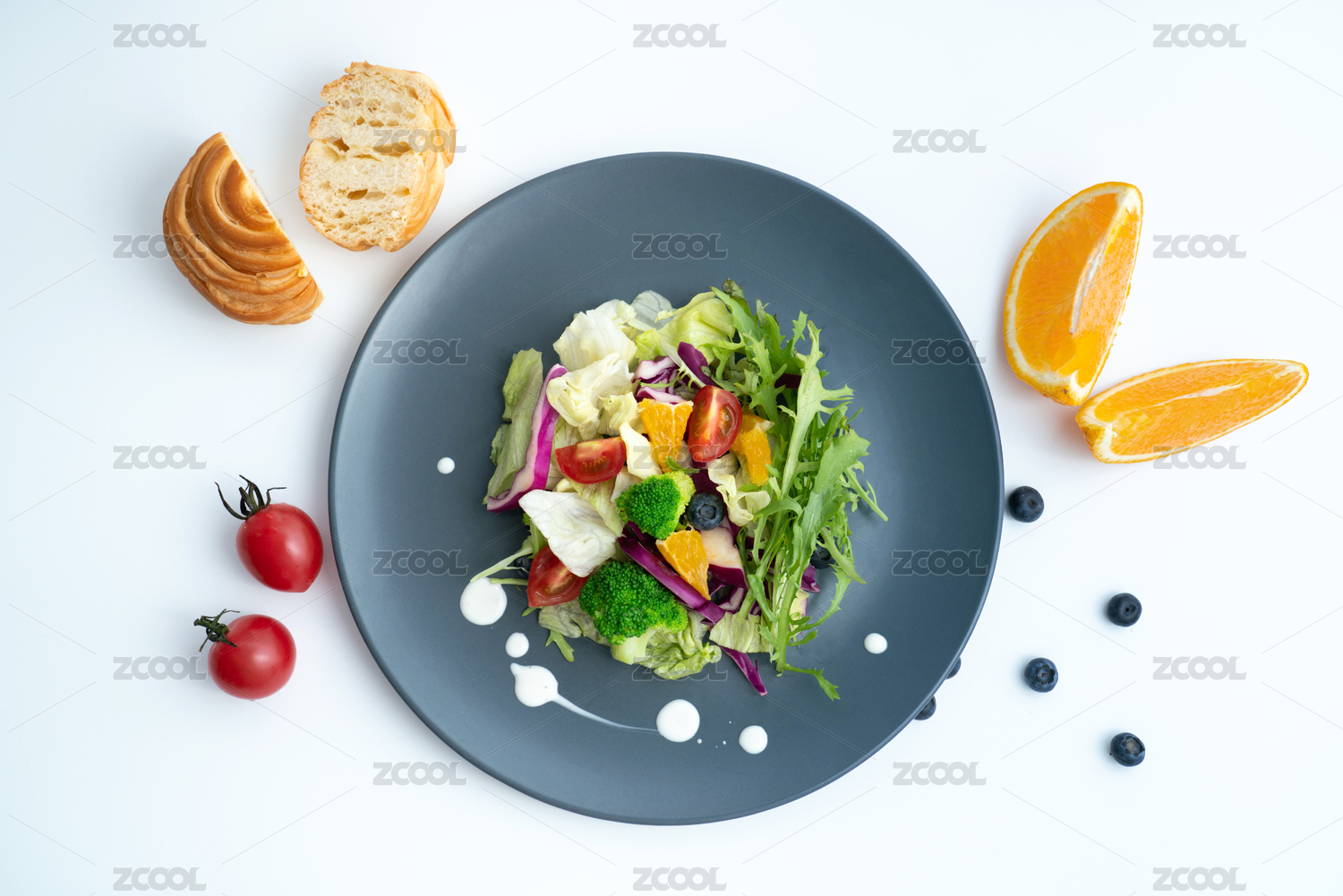 一盘美味健康的蔬菜沙拉放在灰色水泥地上