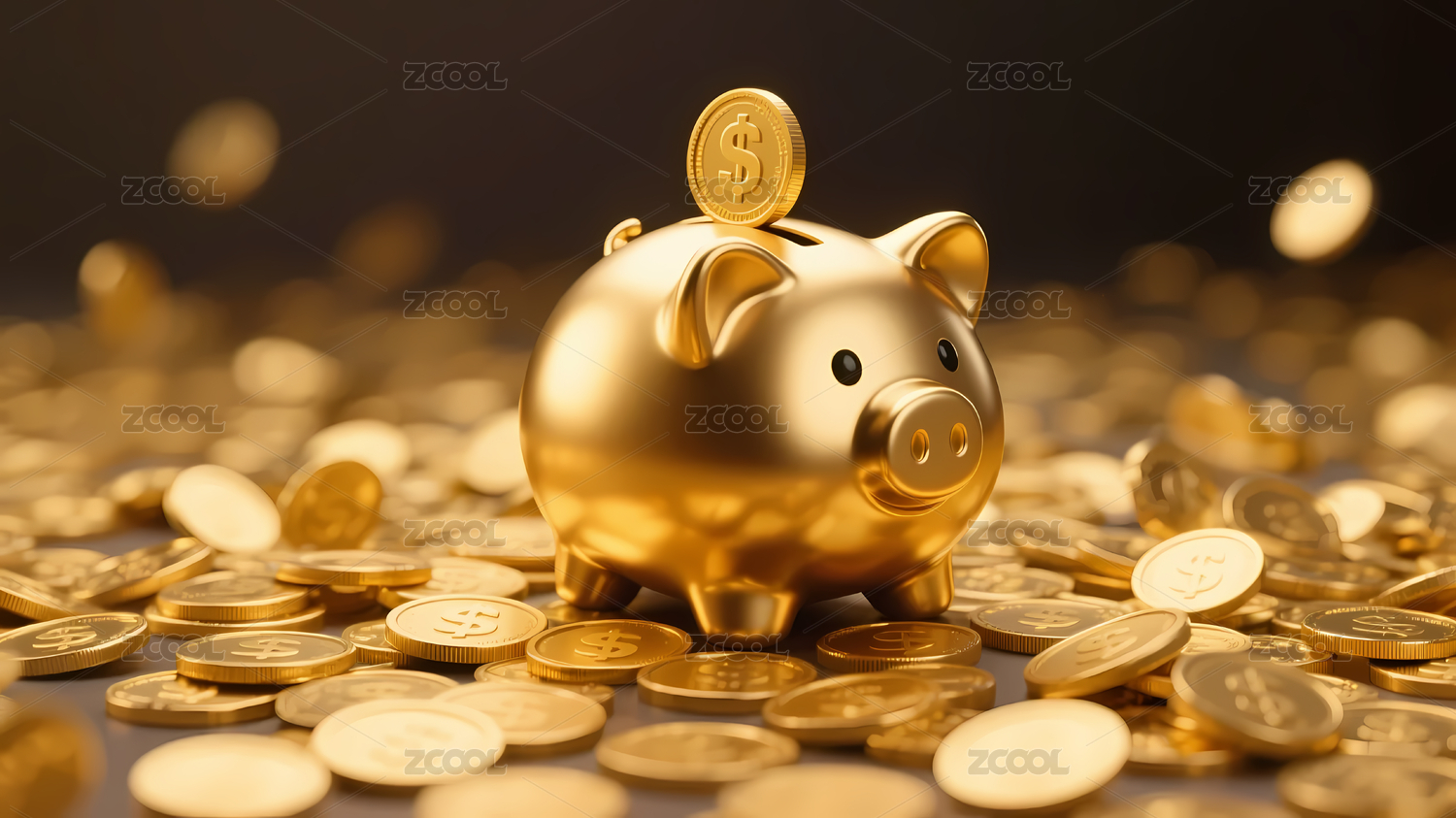 金色储蓄罐与财富光斑