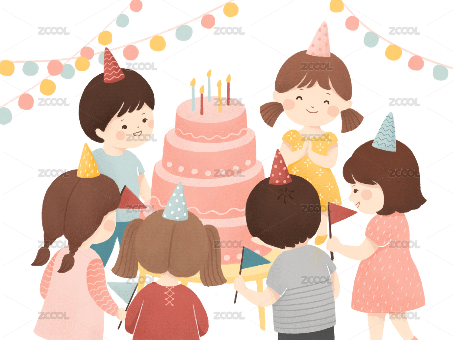 寿星与伙伴庆生画面生日蛋糕气球礼物