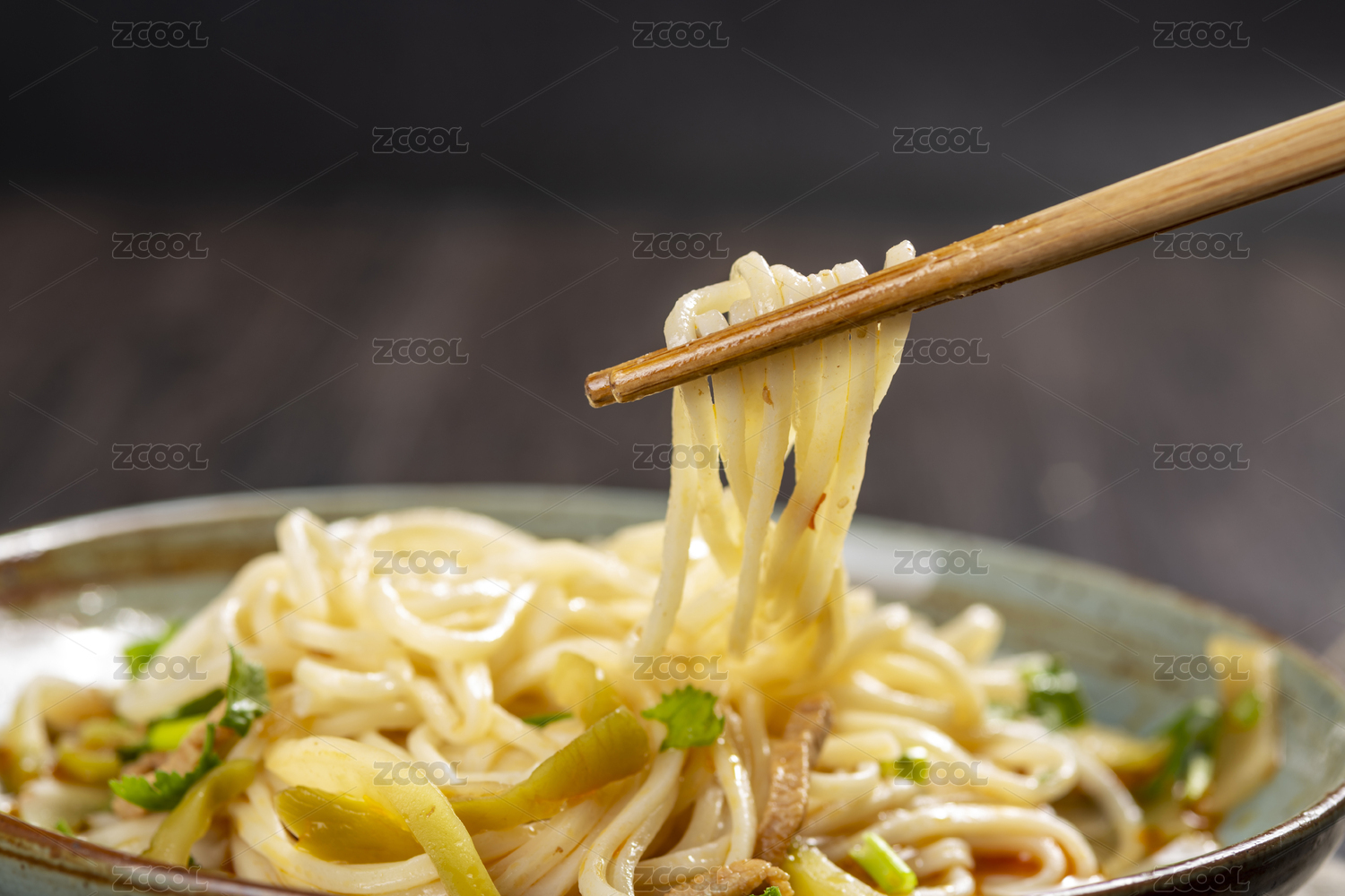 一碗武汉特色小吃热干面摆放在木桌面上特写