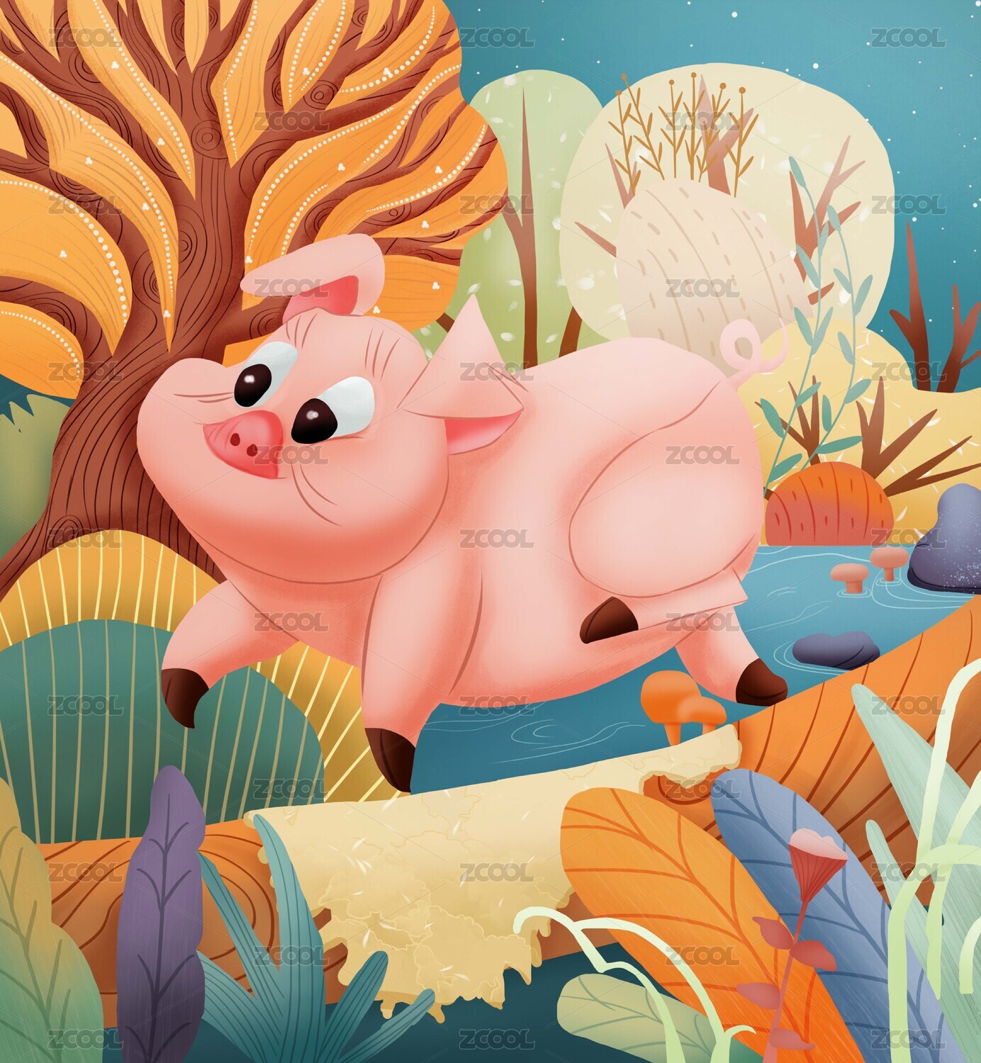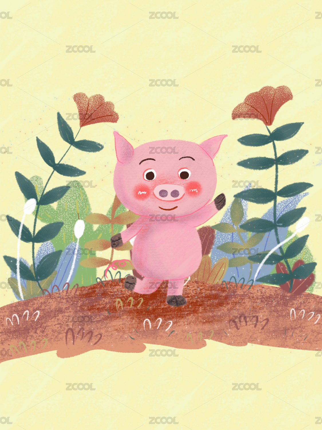 小猪室外插图插画艺术设计