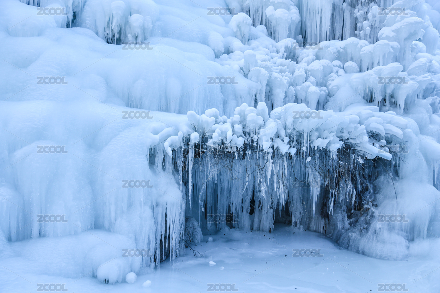 冬季的冰瀑,静谧的蓝色,冬天的冰