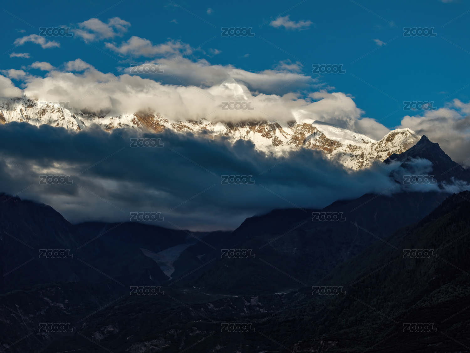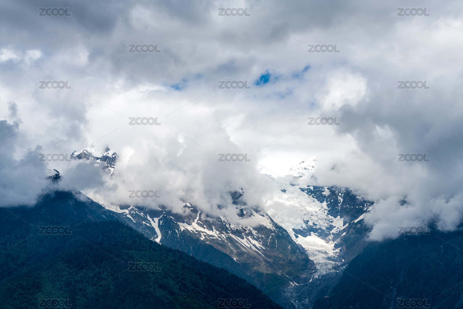 云雾缭绕的雪山