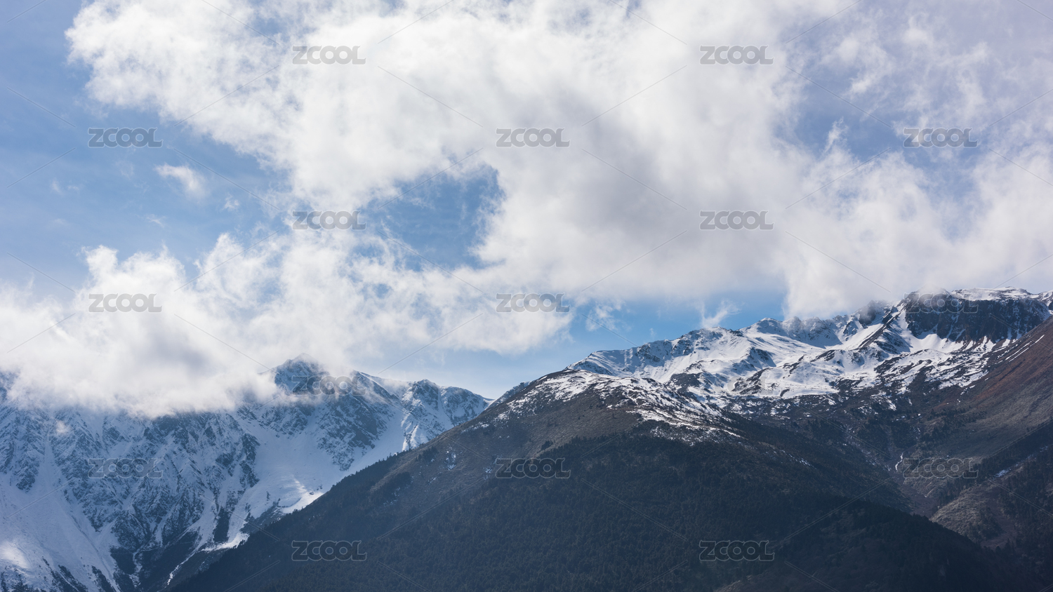雪山山峰和蓝天白云背景图
