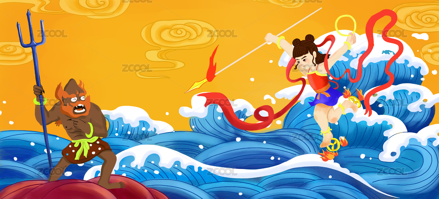 中国古典故事哪吒闹海海报设计