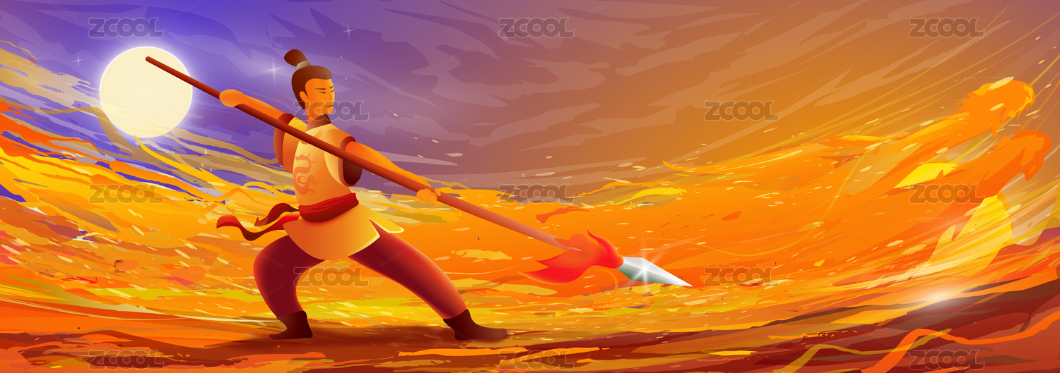 封神榜剑客英雄少年舞动银枪天地火焰化龙插