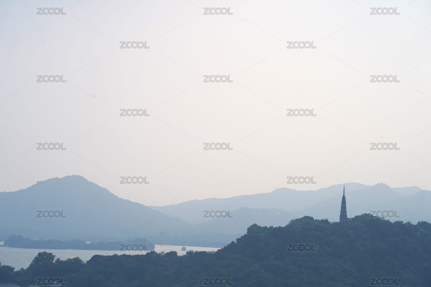 水墨西湖 杭州西湖保俶塔与群山剪影