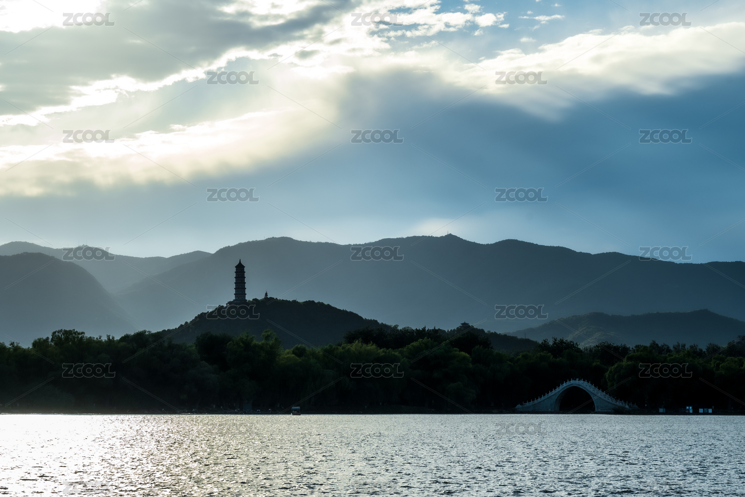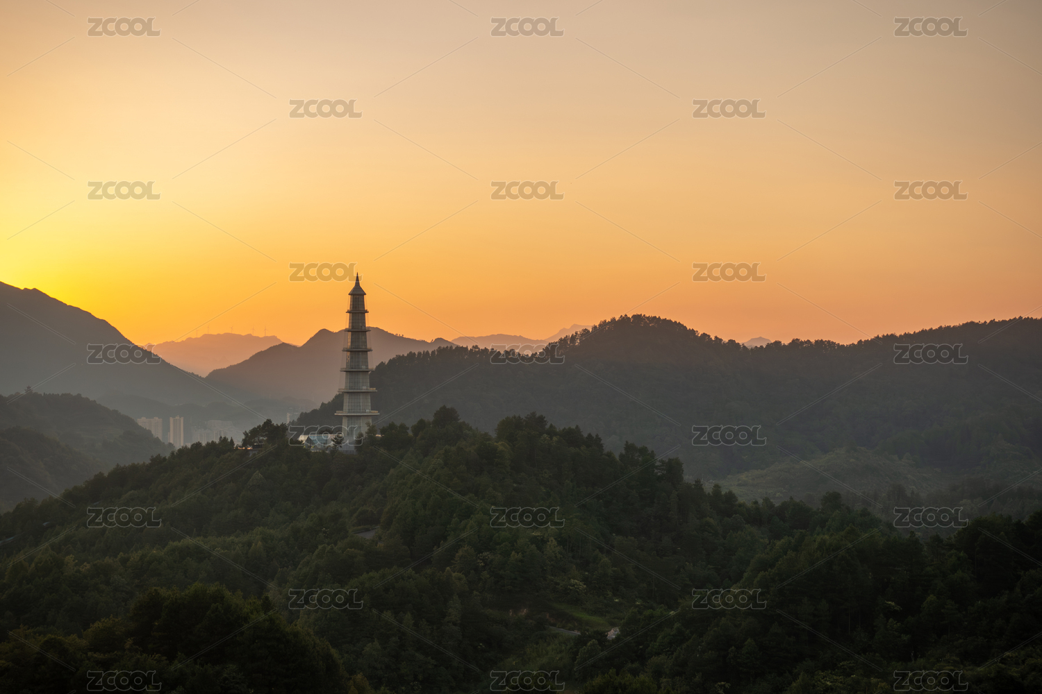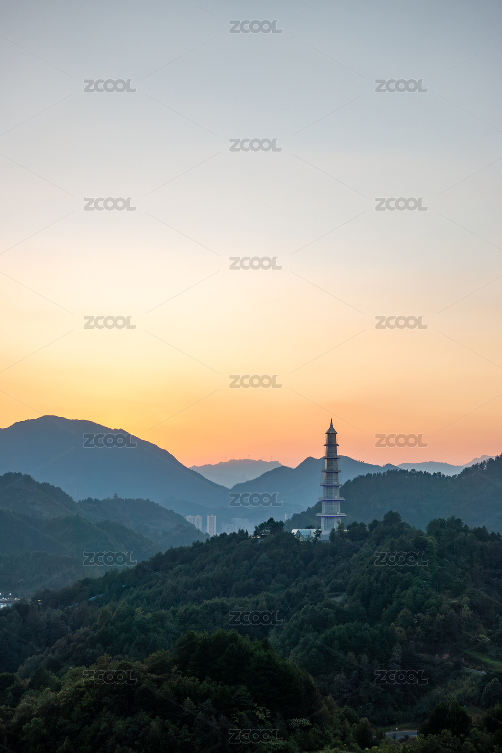 中国浙江杭州西湖宝石山保俶塔黄昏