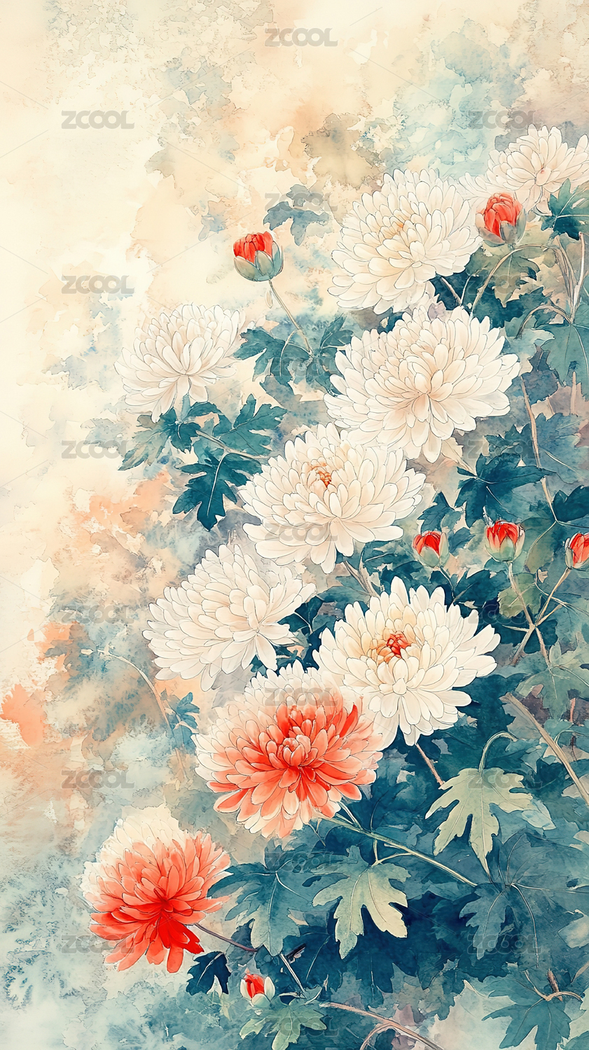 盛开的菊花,水彩风格