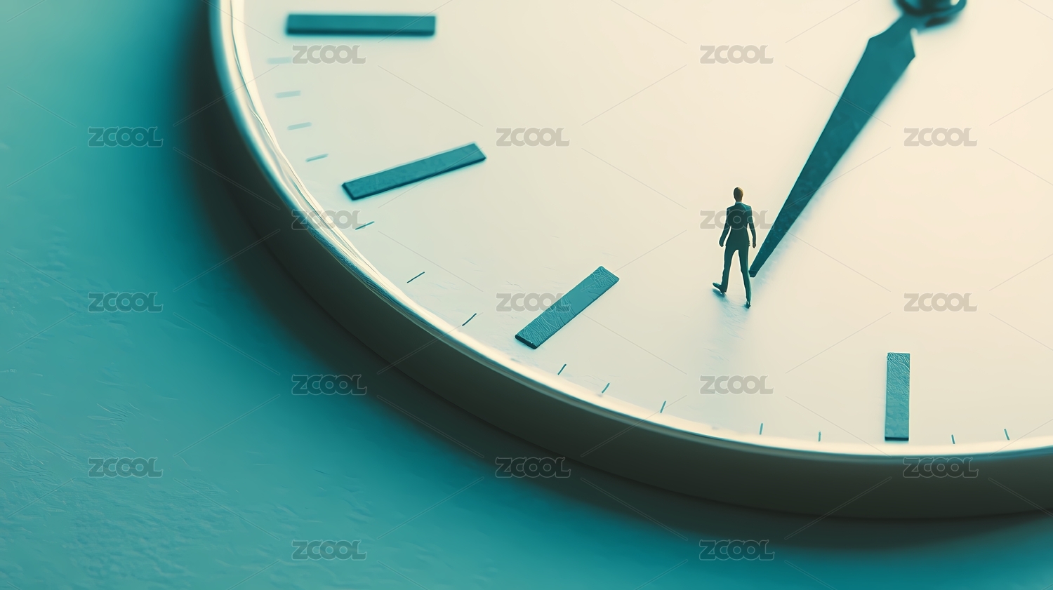 微缩创意拉扯时钟指针阻止时间流逝的小人