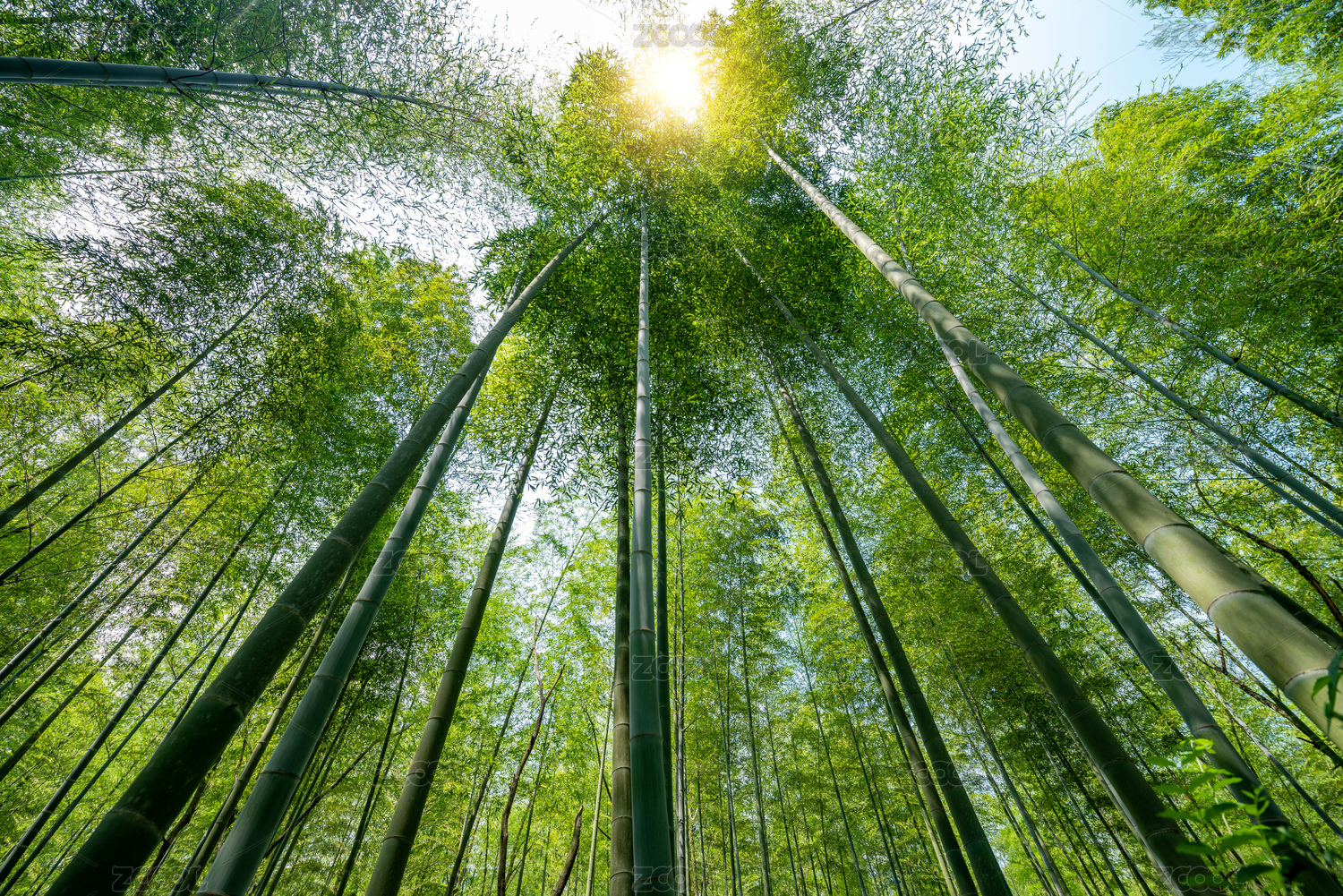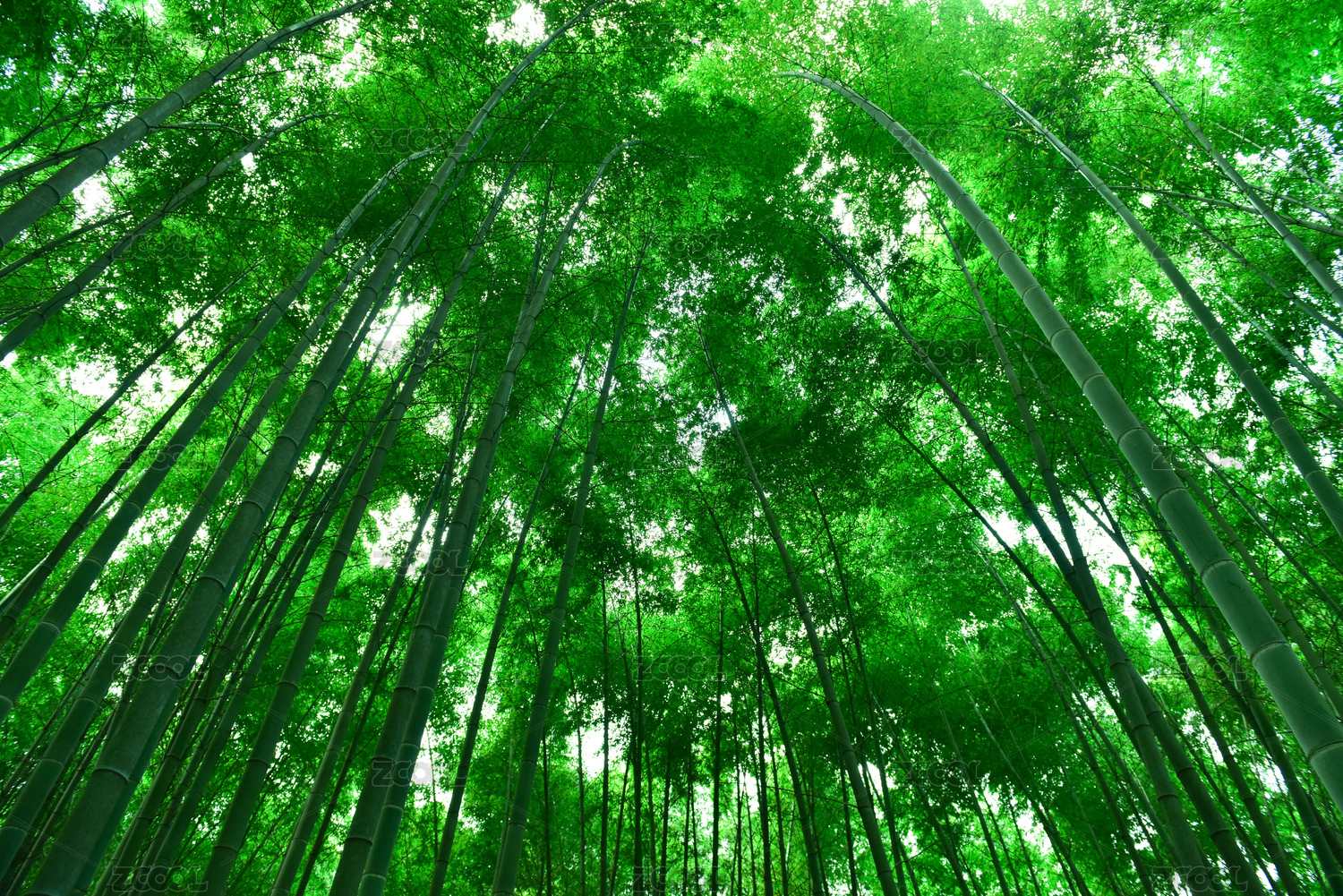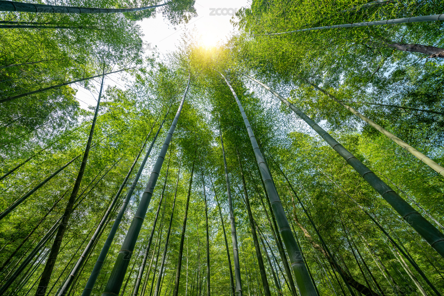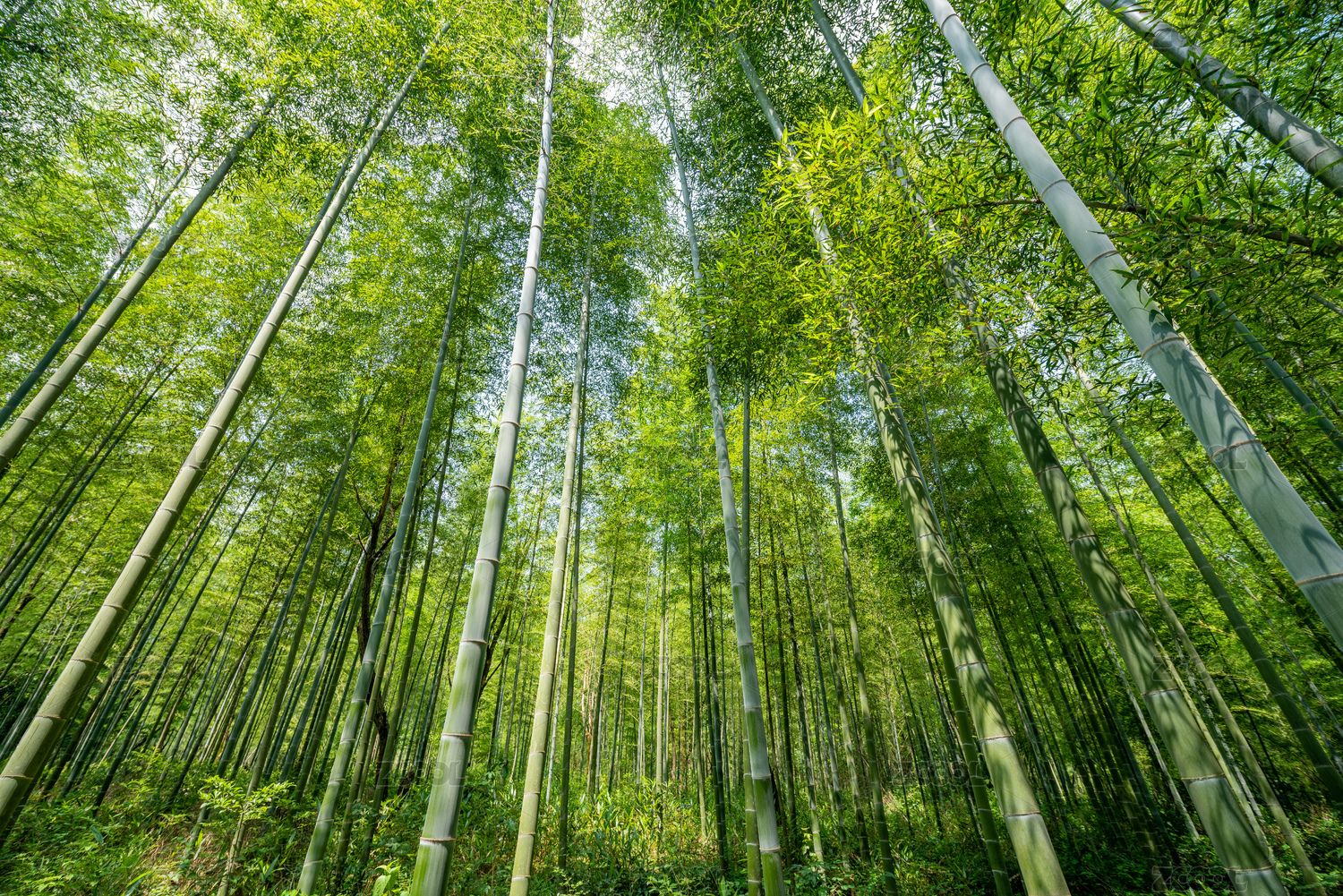 仰望绿色的竹林