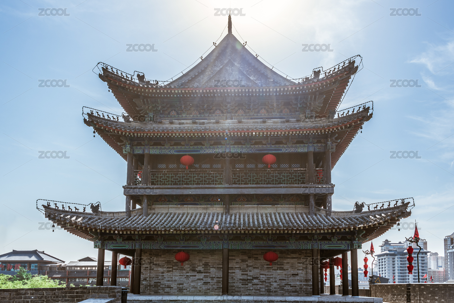 中国山西忻州古城的城墙古建筑