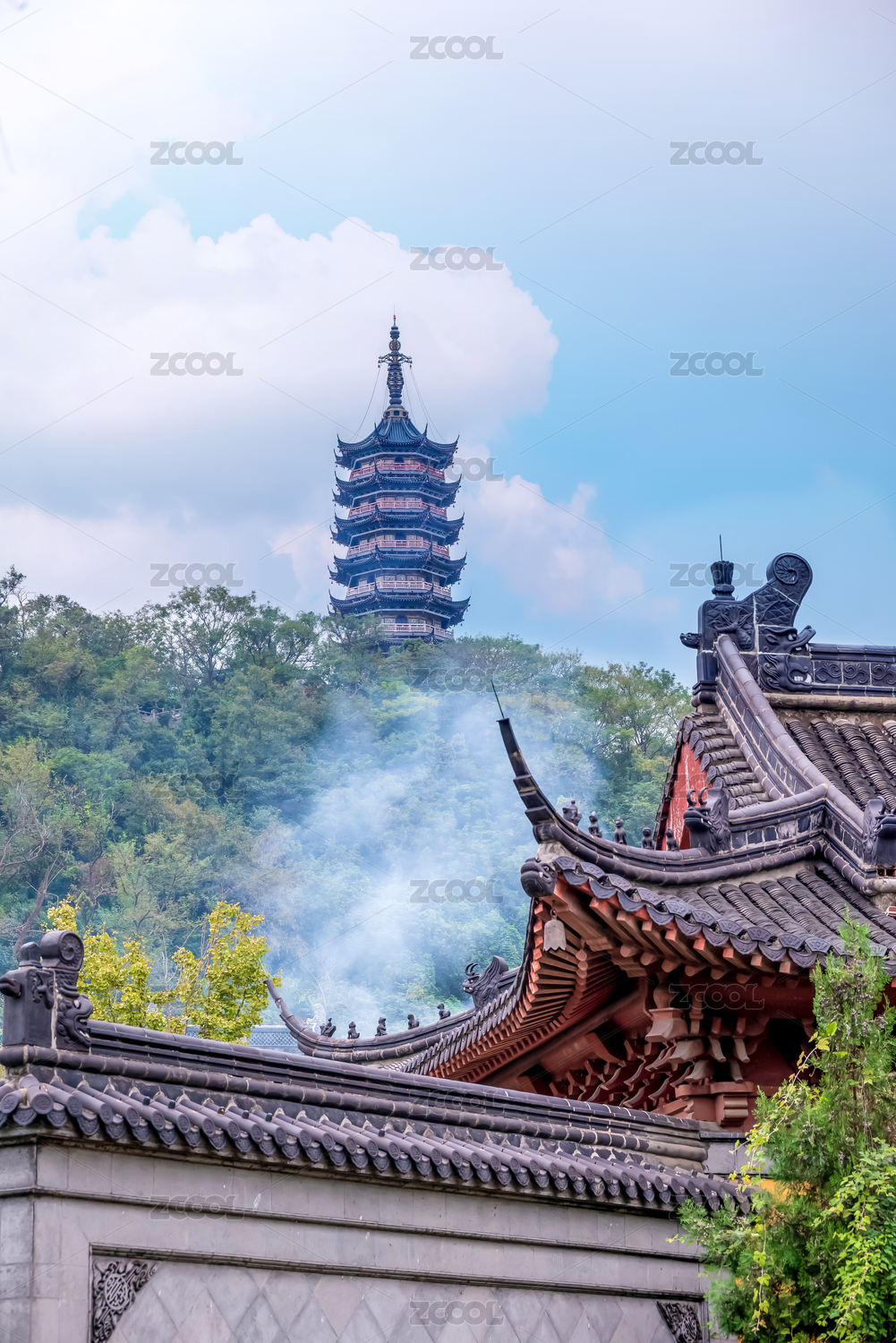 晴朗的午后,镇江焦山风景区万佛塔建筑