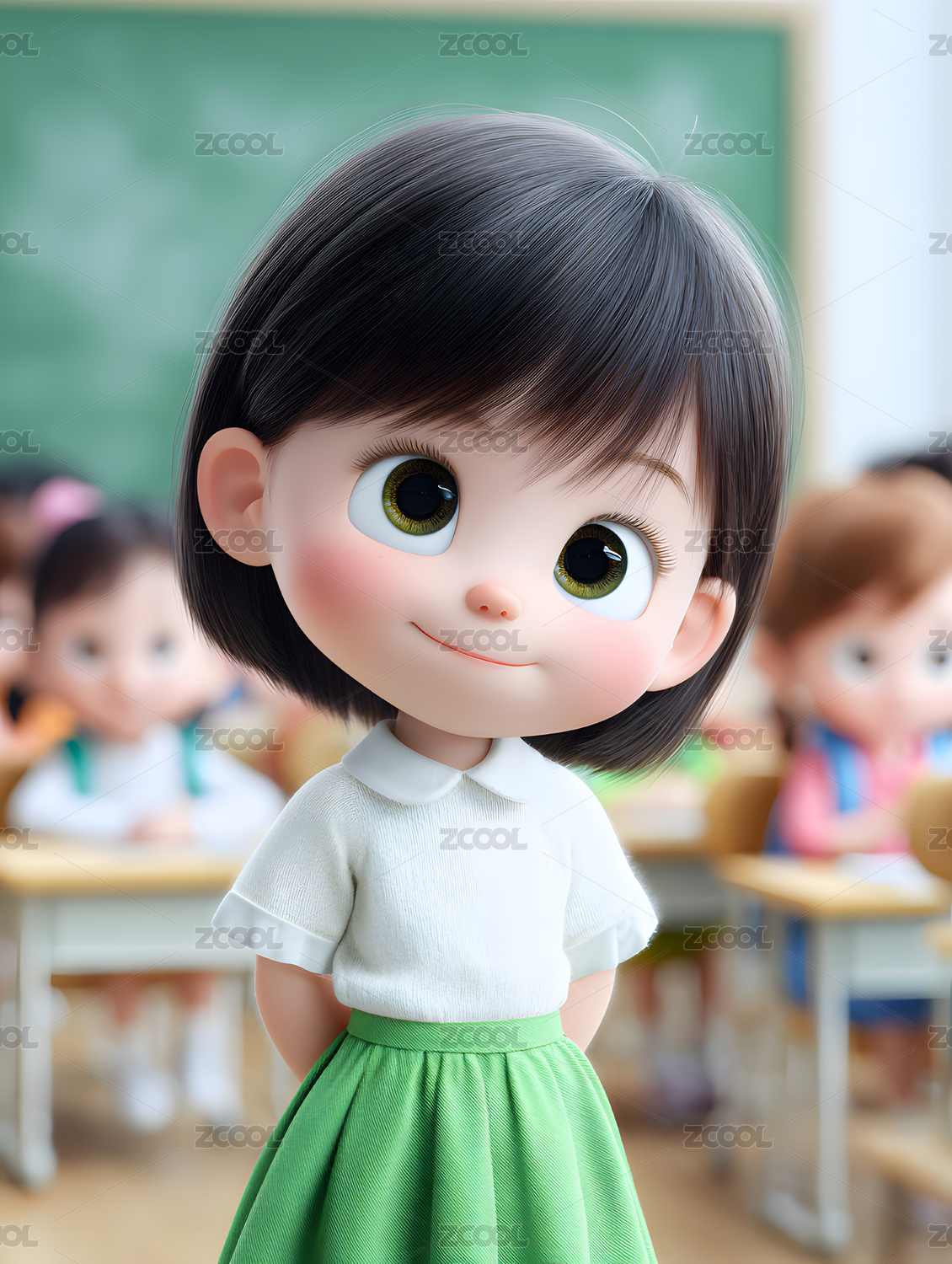 3D卡通可爱女学生插画