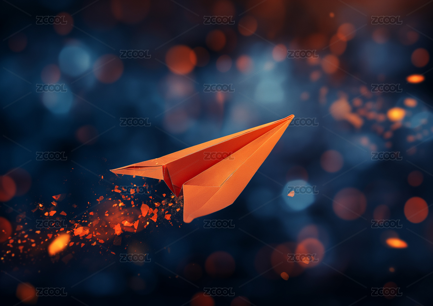 红纸飞机夜空飞翔