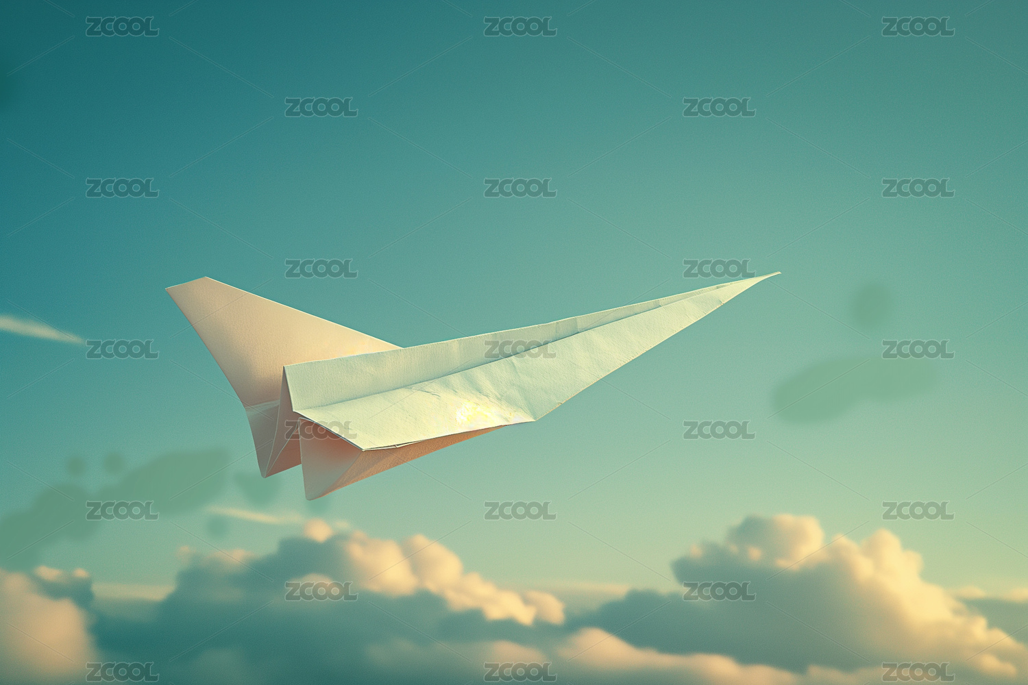 一个代表梦想的纸飞机在飞行