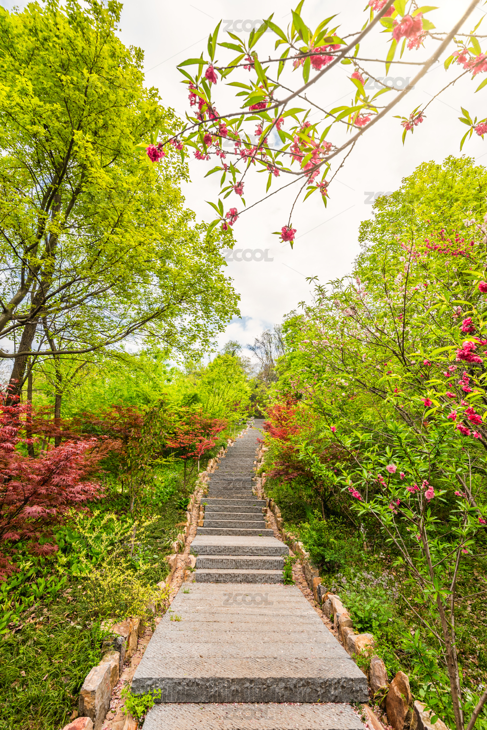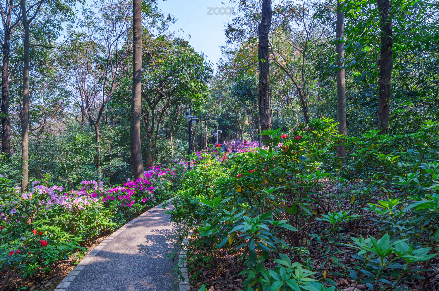 广州麓湖公园鸿鹄山林间登山道鲜花