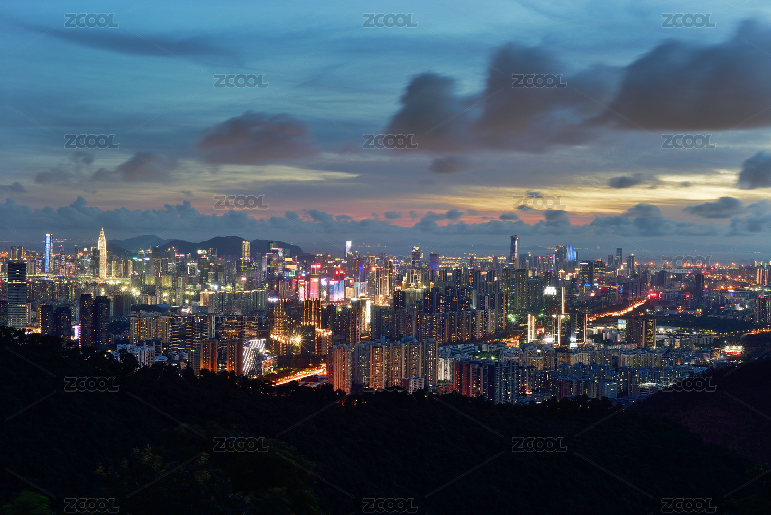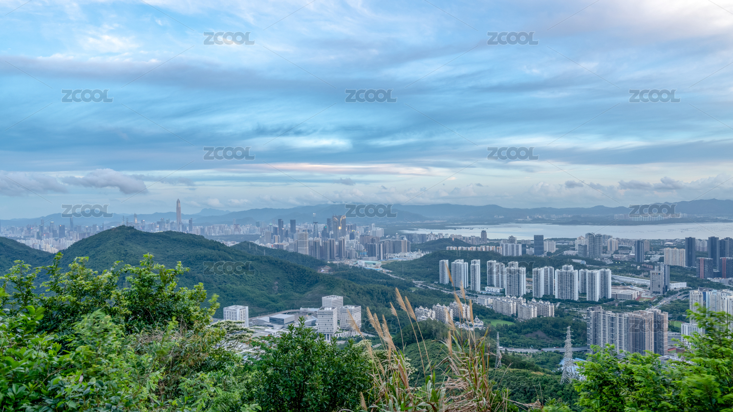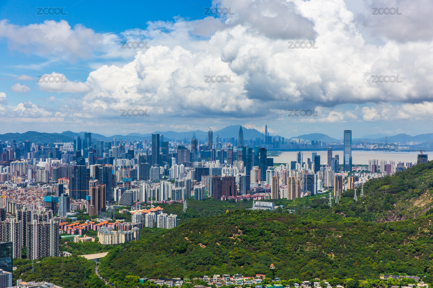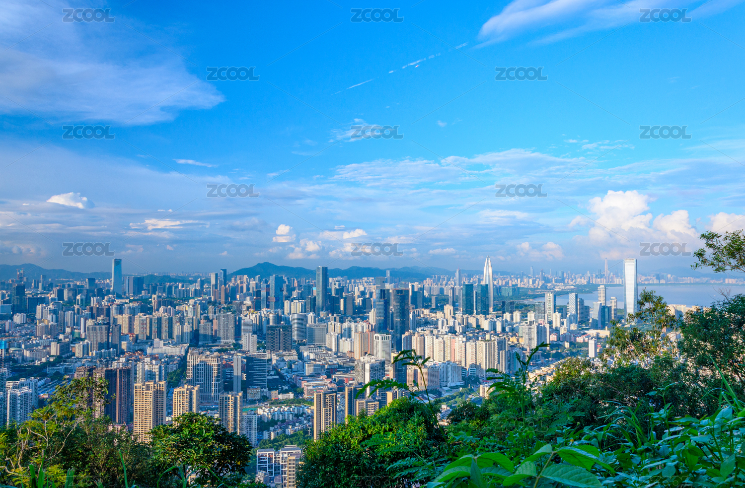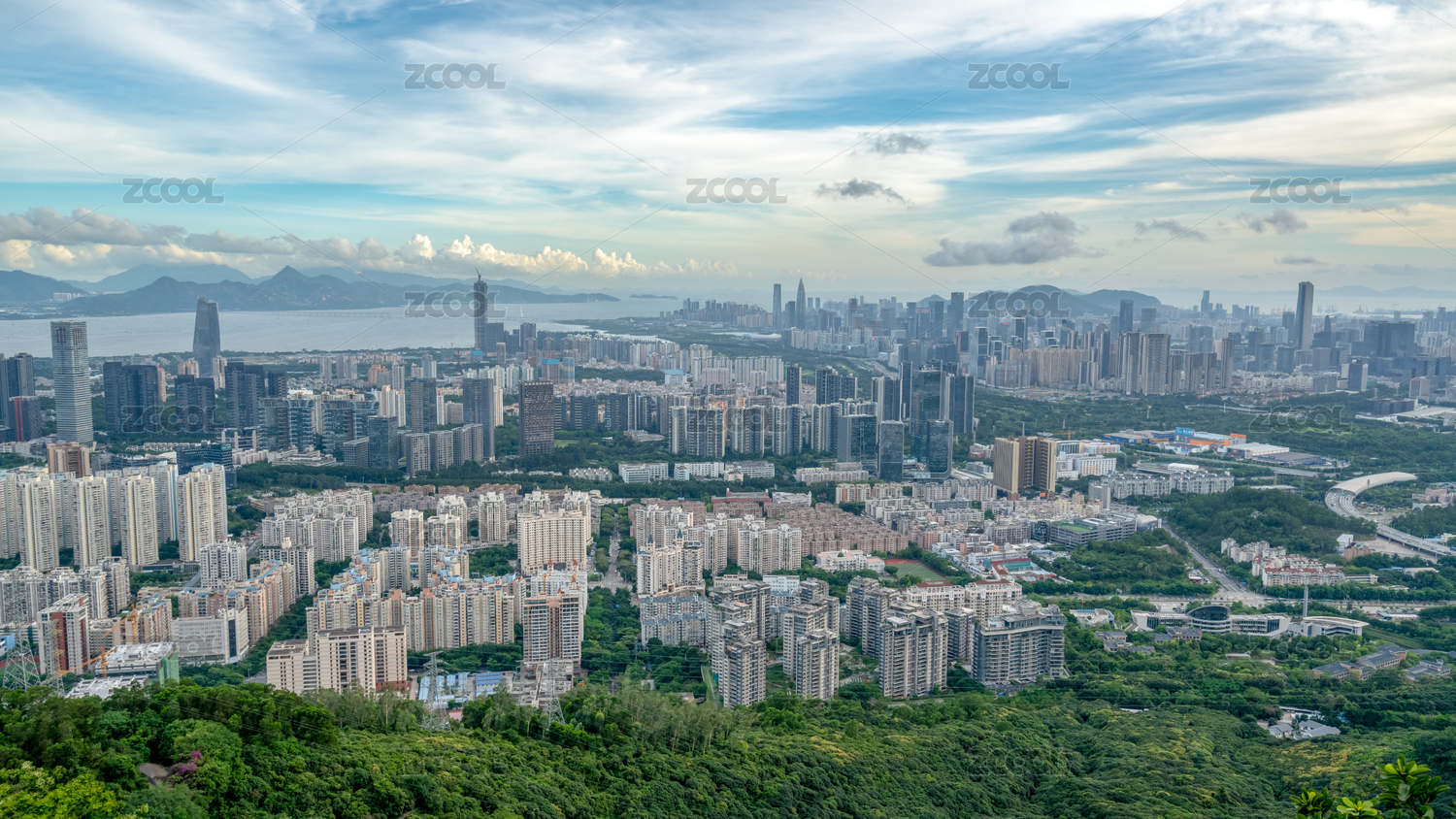 深圳南山公园望CBD摩天大楼繁华都市风光
