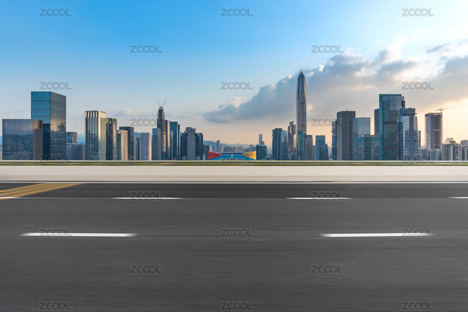 中国广东深圳市区城市天际线和空白无人的机动车道