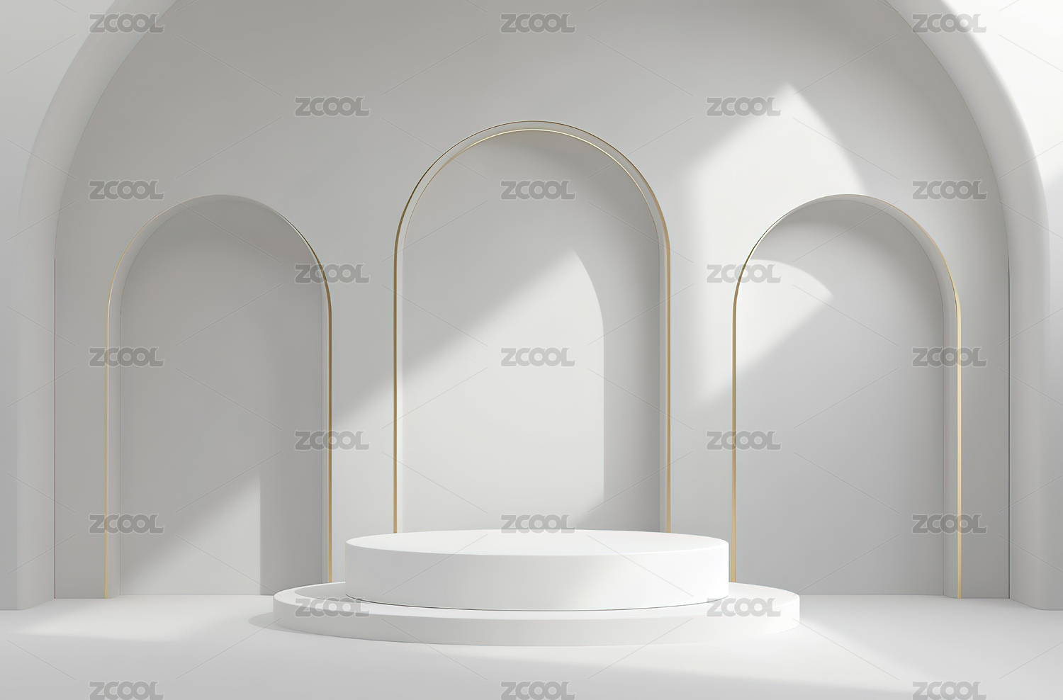 简约弧形背景的圆形展示台