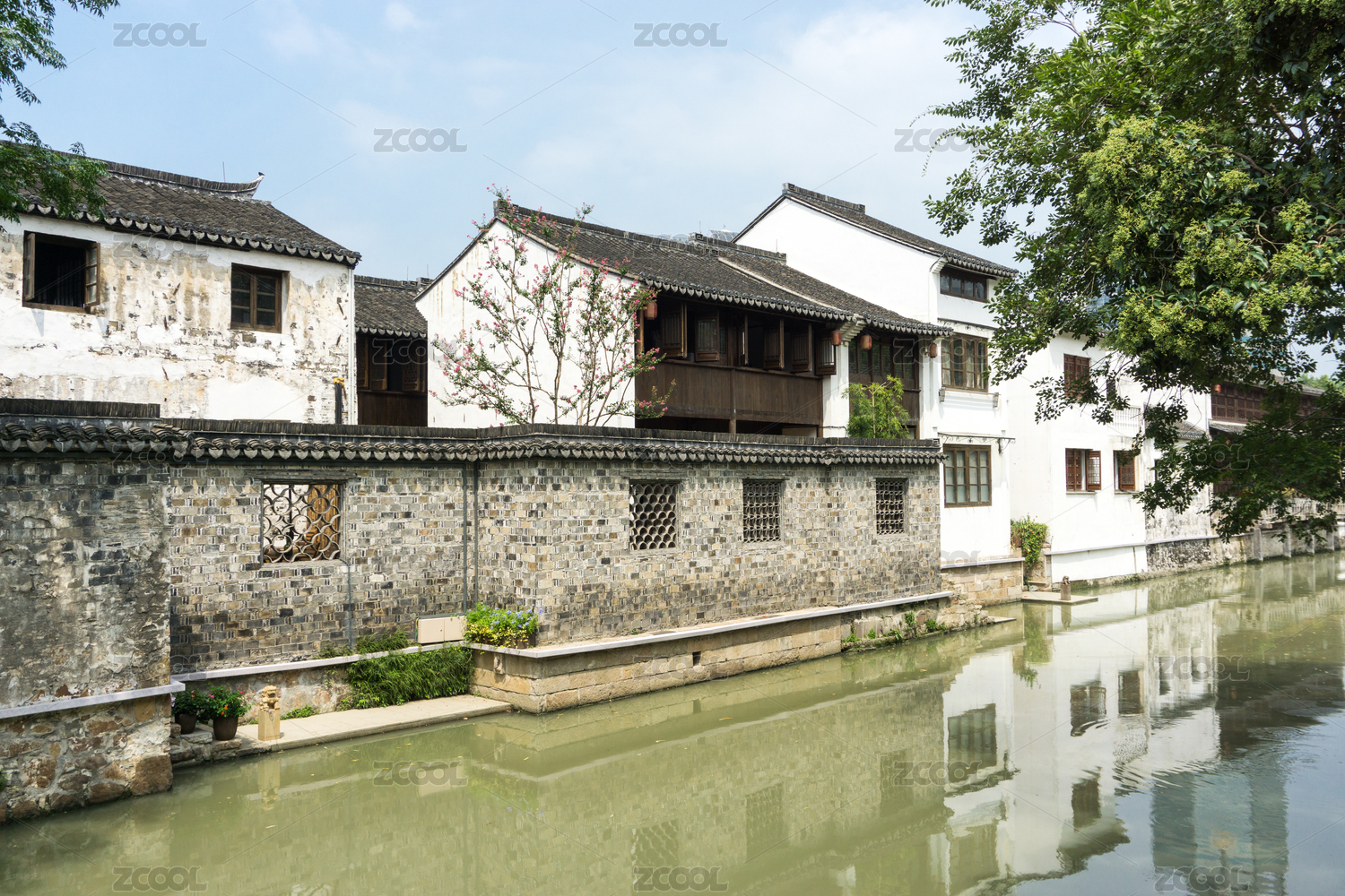中国上海闵行召稼楼古镇水乡自然景观风光