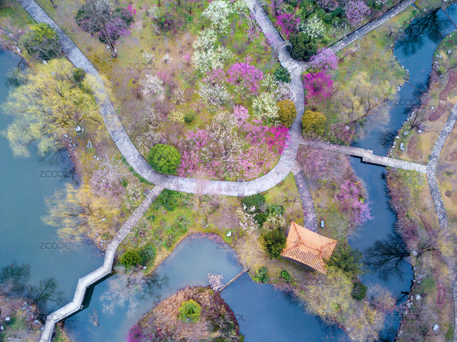 湖北武汉春季白天东湖樱花园航拍风光