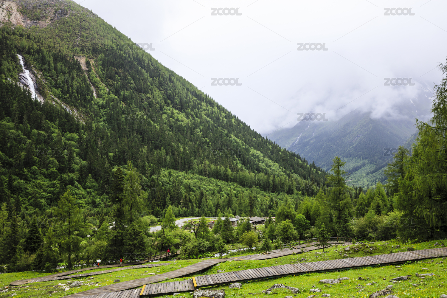四川阿坝理县毕棚沟景区的高山瀑布