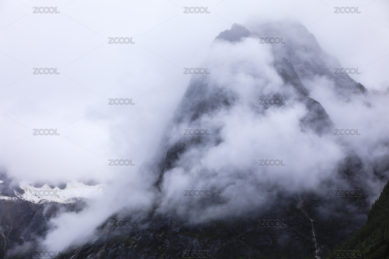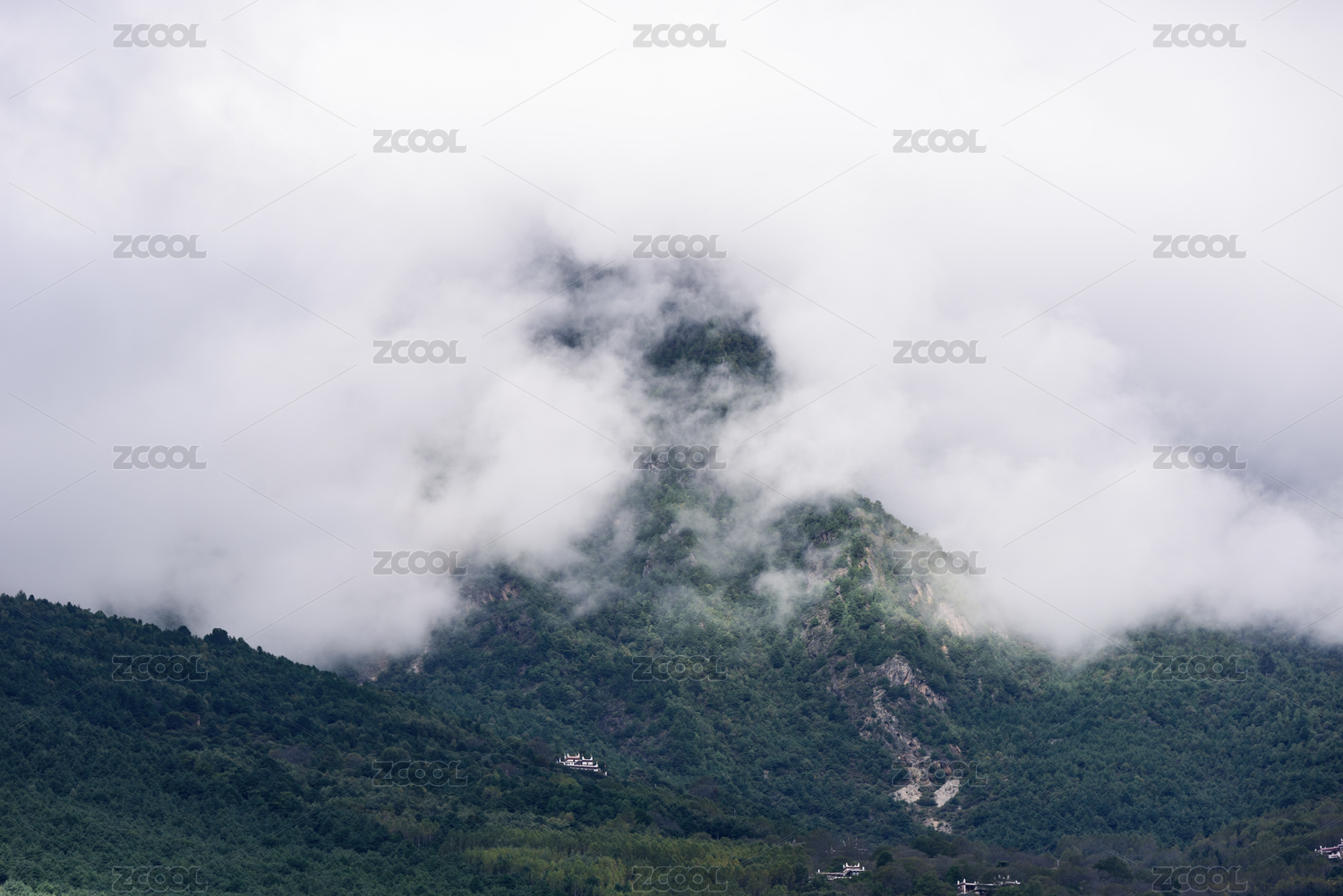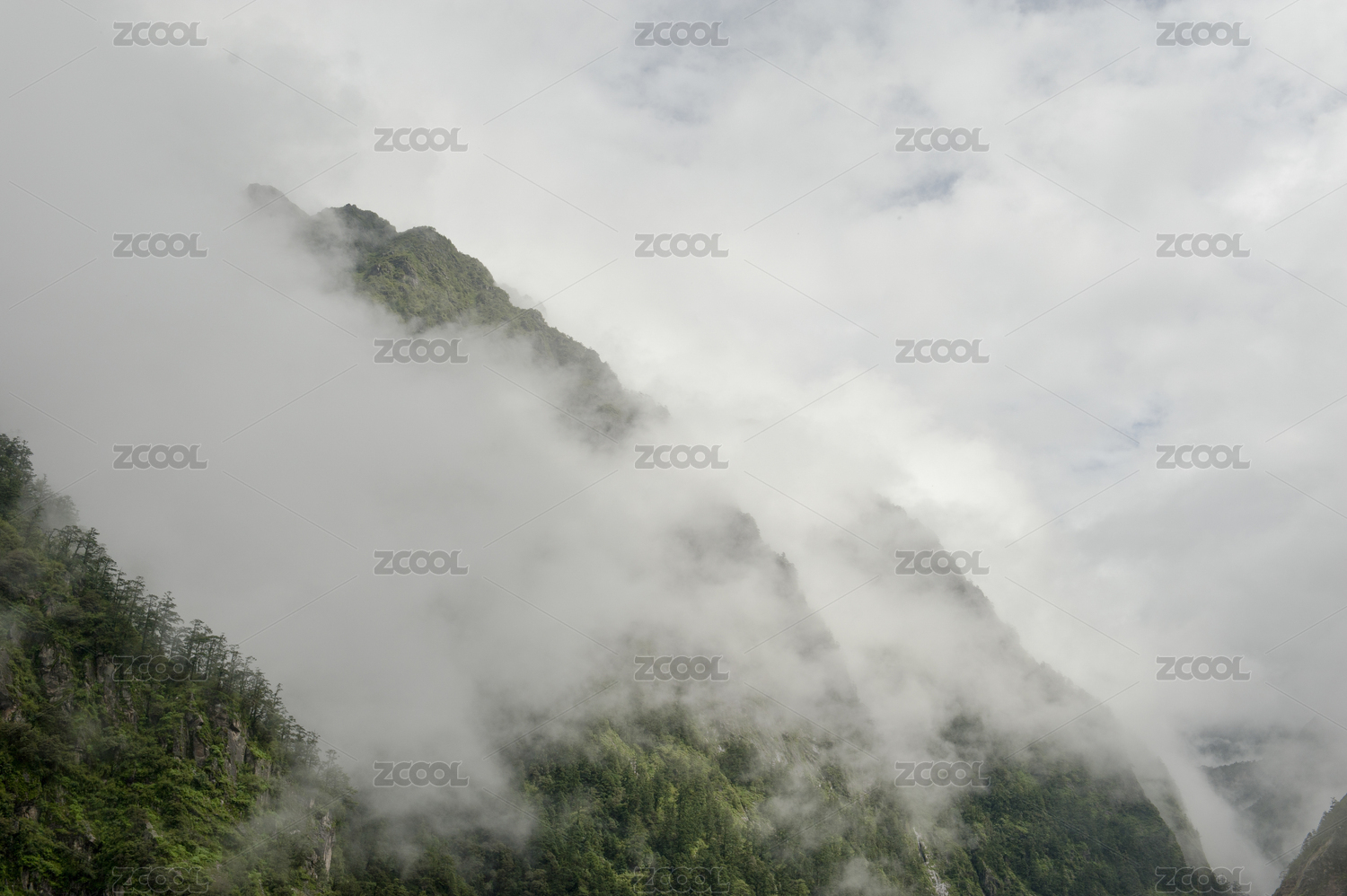 中国西藏雅鲁藏布江峡谷高山晨雾
