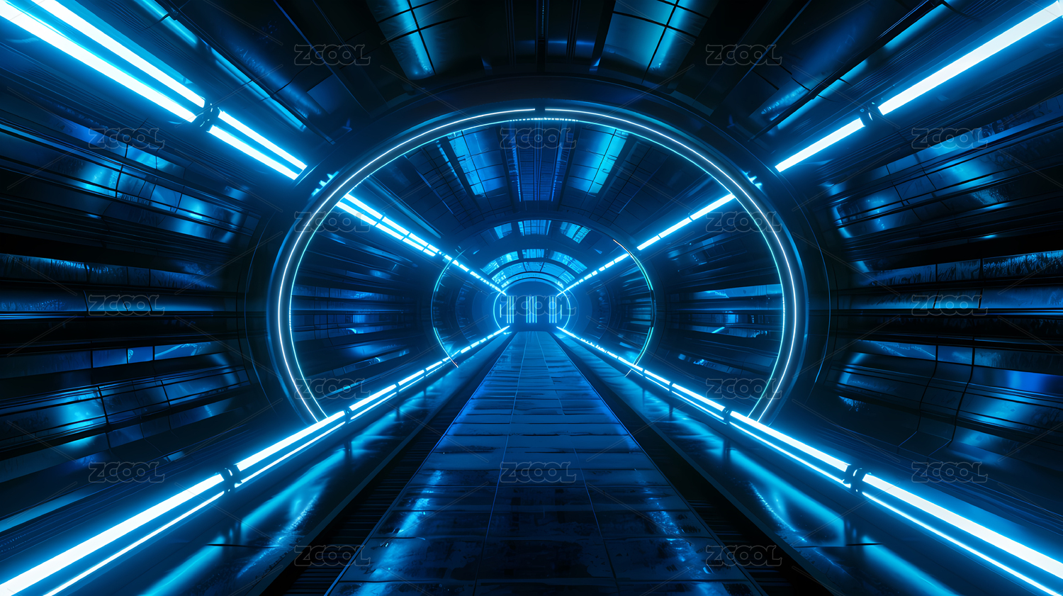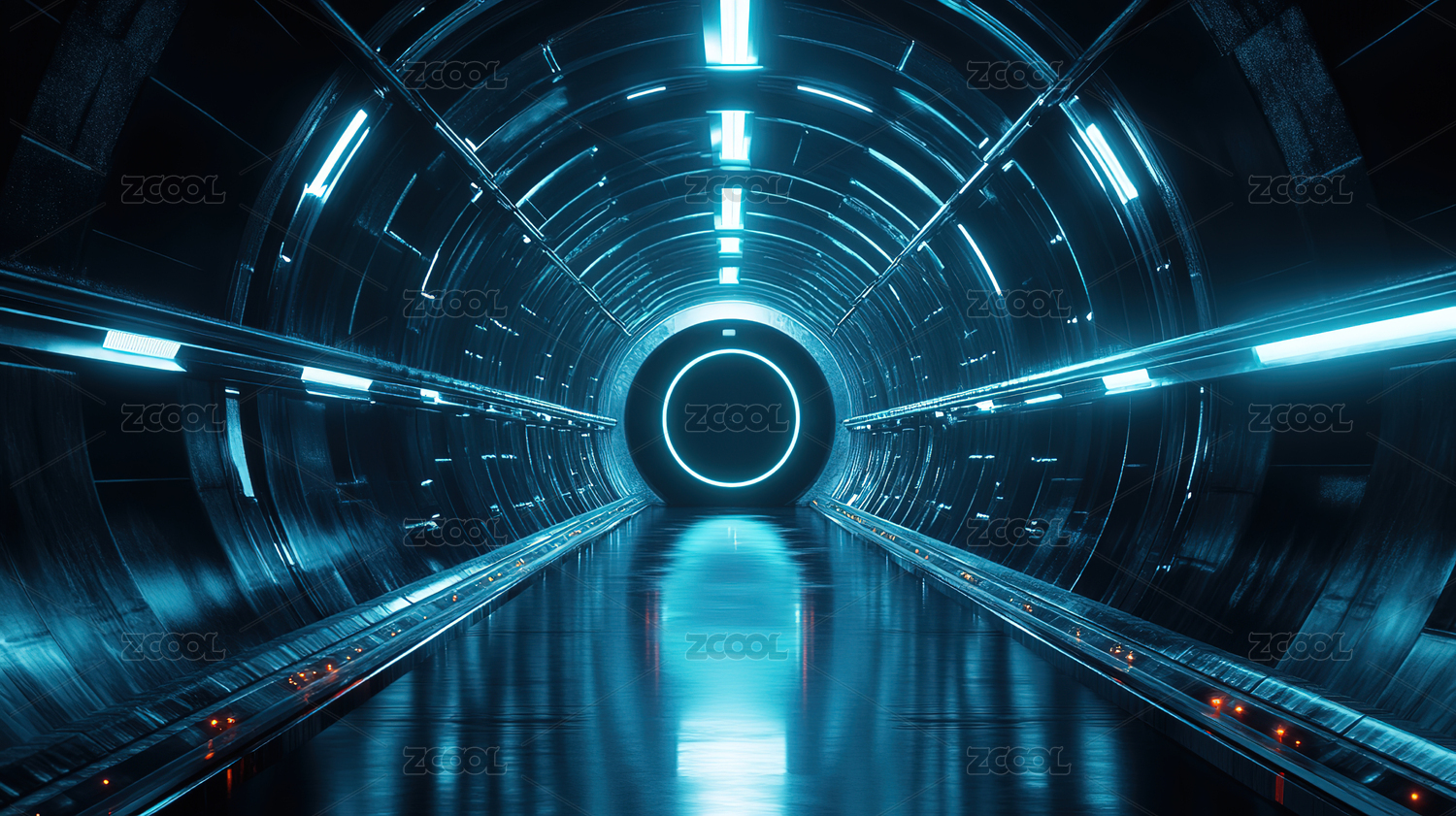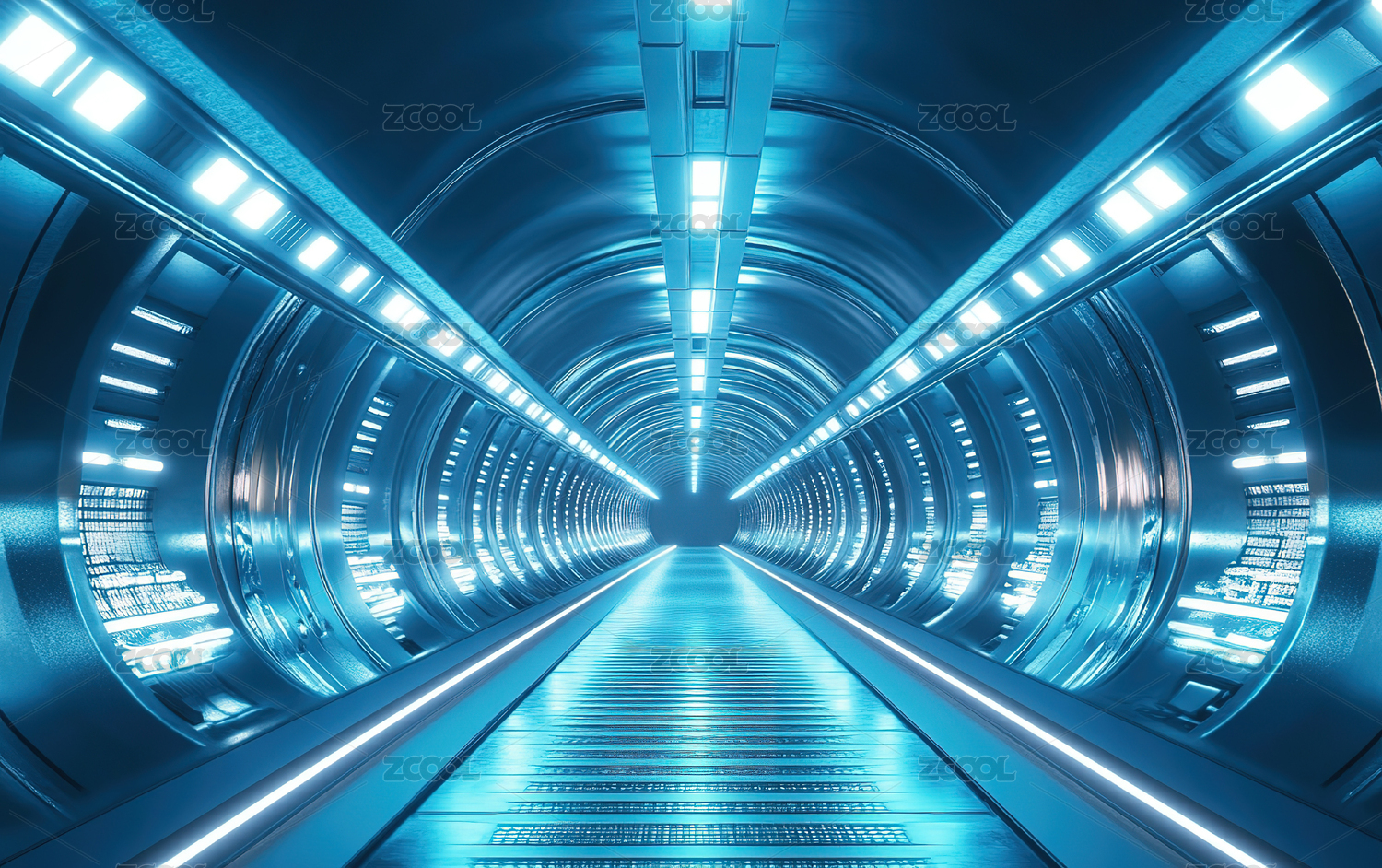黑暗隧道与发光照明,抽象技术速度概念三维