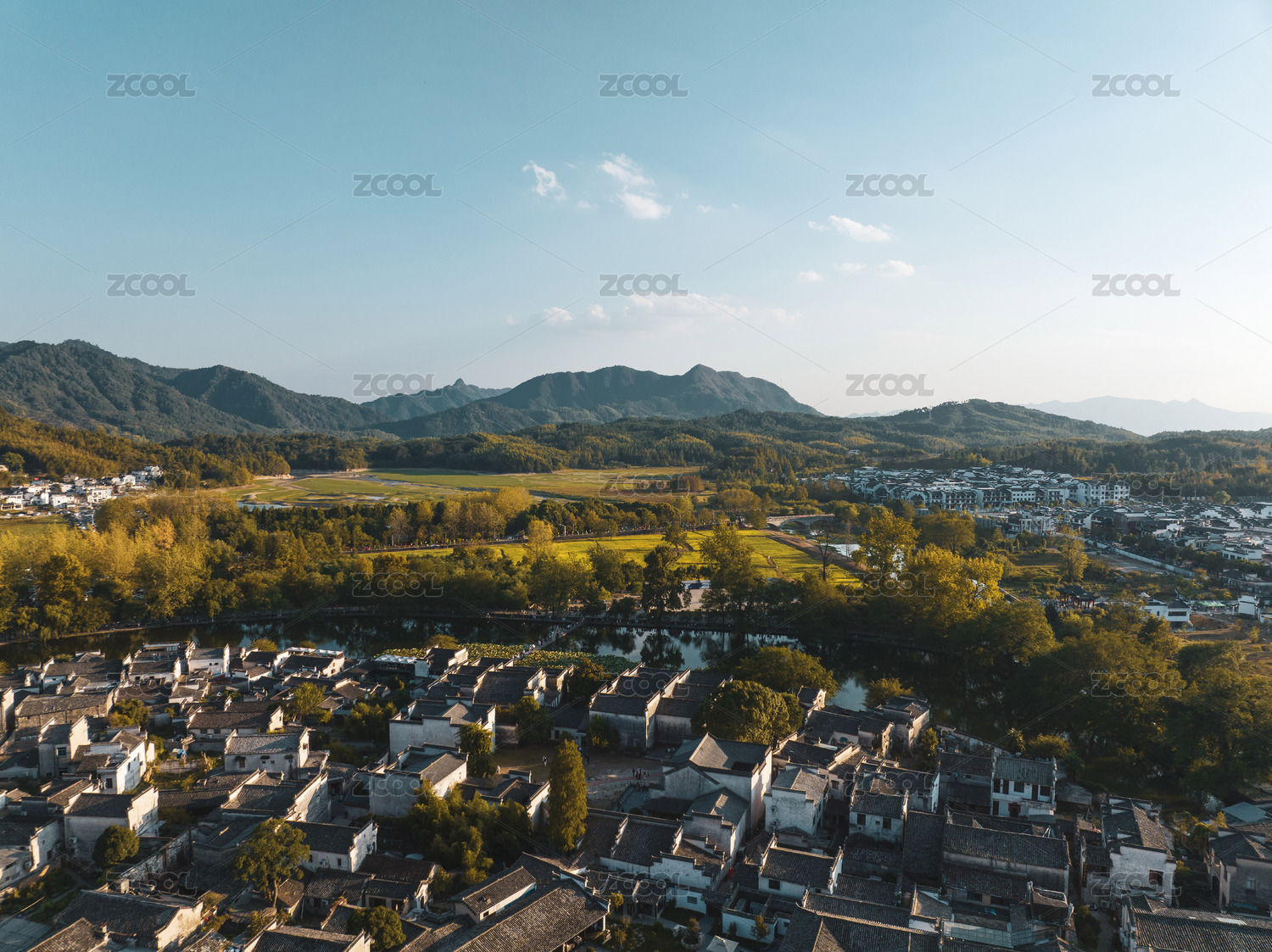 黄山市宏村景区内航拍