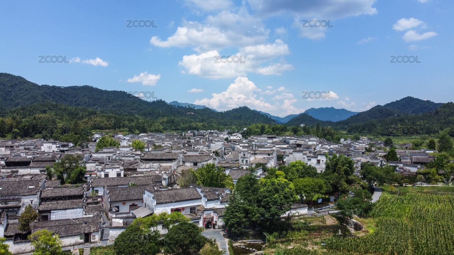 黄山宏村景区内俯视图